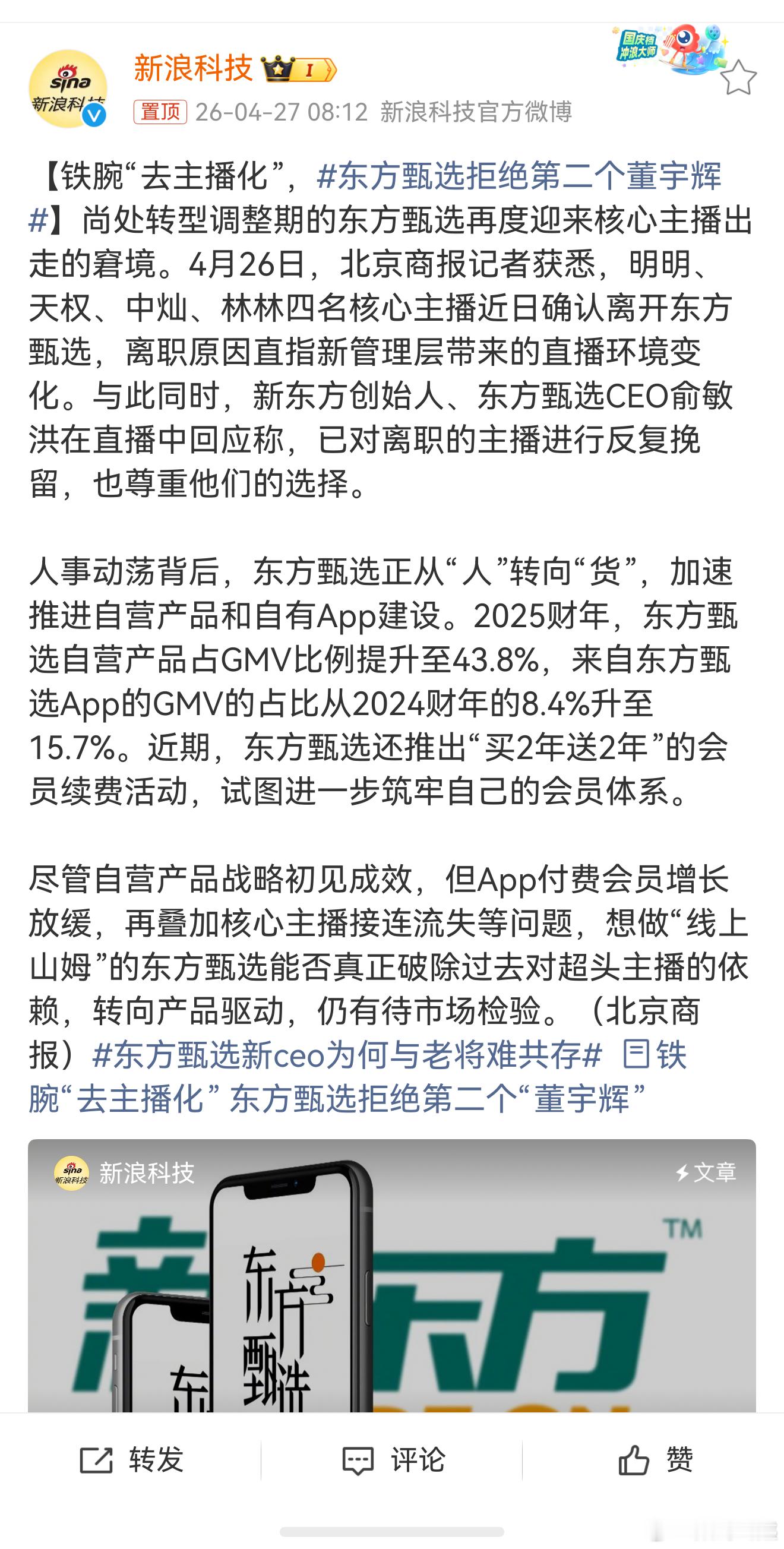 东方甄选拒绝第二个董宇辉现在已经早刷不到了,而且也不会买东西, 说到底就是一家转型卖货的公司,占了太多社会资源了……