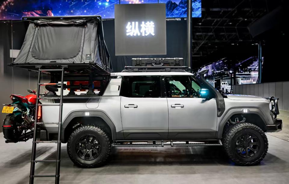 这次北京车展,我在E1馆纵横展台前站了挺久。不是因为G700那些花里胡哨的改装版不够吸睛,而是旁边那台F700皮卡,越看越觉得有意思。 说实话,我以前对国产皮卡是没什么感觉的。你想想,国内皮卡市场这些年给你的印象是什么?工具车、拉货的、工地上跑的,偶尔看见一台进城还得被限行。但纵横F700这台车,给我的第一感觉是——它压根不是冲着"干活"来的,它更像是给那些周末想出去野、平时又想体面开的人准备的。 先说外观。这车往那一杵,五米一的车长、两米多的宽度,气场确实够硬。不是那种硬凹造型的硬汉,而是底盘扎实、比例协调的那种厚重感。有人说它是"东方Cybertruck",我觉得这个比喻有点意思但也不完全对——Cybertruck那个棱角分明的设计太科幻了,F700更像是一个穿了战术背心的健身教练,粗犷但不浮夸。我站在旁边的时候,旁边好几个人都在拍照,有个大哥还问销售"这车多少钱",销售说还没公布,大哥那个表情就像等外卖等了两小时还没到。 这车最让我动心的是它的动力系统。鲲鹏超能混动CDM-O,综合功率665千瓦,换算过来904马力,零百加速5秒出头。说实话,904马力放在一台皮卡上,你开一台皮卡红绿灯起步崩掉旁边的小钢炮,这画面光想想就觉得好笑。但话说回来,马力大不是为了崩直线,而是越野的时候有底气。低速四驱扭矩放大之后,爬坡过坎的从容感,跟那些2.0T的皮卡完全不是一个级别。 而且它是混动的,这一点太关键了。纯油皮卡在城市里开,油耗能把你心疼哭;纯电皮卡跑长途又焦虑。混动刚好卡在中间,市区用电省钱,长途用油不焦虑,这个逻辑对于皮卡用户来说是最合理的。我有个朋友开某合资品牌皮卡,每次加油都跟我吐槽"油箱是个无底洞",要是他看到这台车,估计得酸死。 底盘方面,前后双叉臂独立悬架、内高压一体成型大梁、三把锁。这些配置放在越野圈里都是硬通货。特别是那个一体成型大梁,比传统焊接大梁刚性更强,跑烂路的时候车身扭曲会小很多,长期用下来可靠性也更有保障。三把锁就不用说了,前中后全锁死,理论上只要有一个轮子有抓地力就能脱困,这对重度越野玩家来说是刚需。 还有个很有意思的细节,纵横给F700搞了个6×6版本和草原牧狼版。6×6是跟顶火合作的,三电机布局,中桥300千瓦电机,解耦式电混六驱,这个技术含量确实高。草原牧狼版则是重度改装路线,37英寸越野胎、氮气减震、锰钢竞技杠、车顶帐篷,一看就是给穿越玩家准备的。这两个版本虽然大概率不是走量的,但说明纵横想把F700打造成一个"平台"——基础版满足日常,改装版满足极客,这个思路挺聪明的。 价格方面目前还没公布,但参考G700的定价策略,我猜F700应该不会太便宜。毕竟904马力、三把锁、混动系统摆在那里,成本低不了。但如果能控制在30万以内起步,我觉得它有可能把国内高端皮卡市场搅活。 最后说点感受。纵横这个品牌从G700到F700,走的路线跟传统国产车不太一样——它不跟你卷价格、卷配置表,而是先拿环塔拉力赛的冠军证明自己的底子,再把赛场上验证过的技术下放到量产车上。这个"以赛促研"的逻辑我是认可的,因为越野车最重要的不是参数好看,而是真到了荒郊野外抛锚了能不能把你带回来。F700能不能做到这一点,还得等实际上市之后看口碑,但至少从车展上看到的东西来说,这台车有底气让我认真关注一下。【来自懂车帝车友圈】