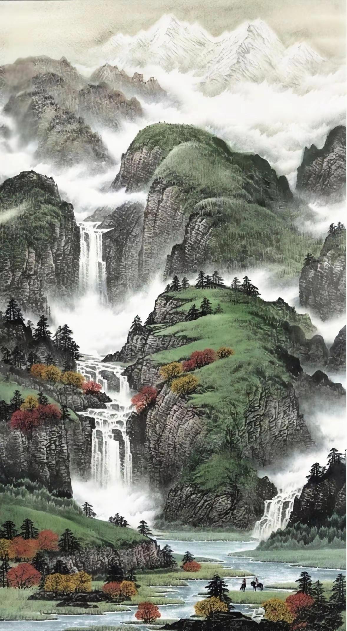 雪域清泉。山水画创作者中心创作灵感国画山水纯手绘