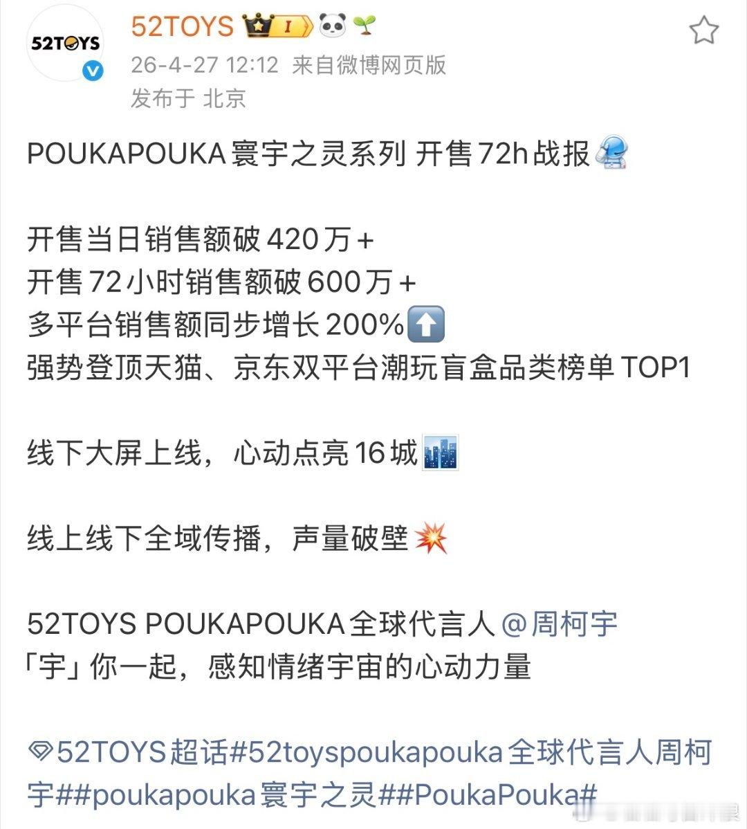 周柯宇首个全球代言人商务战报,首日破400w,72小时破600w!周柯宇这商务成