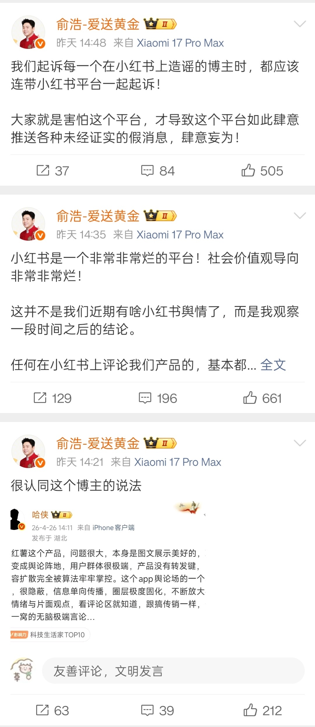 追觅俞浩怒批小红书