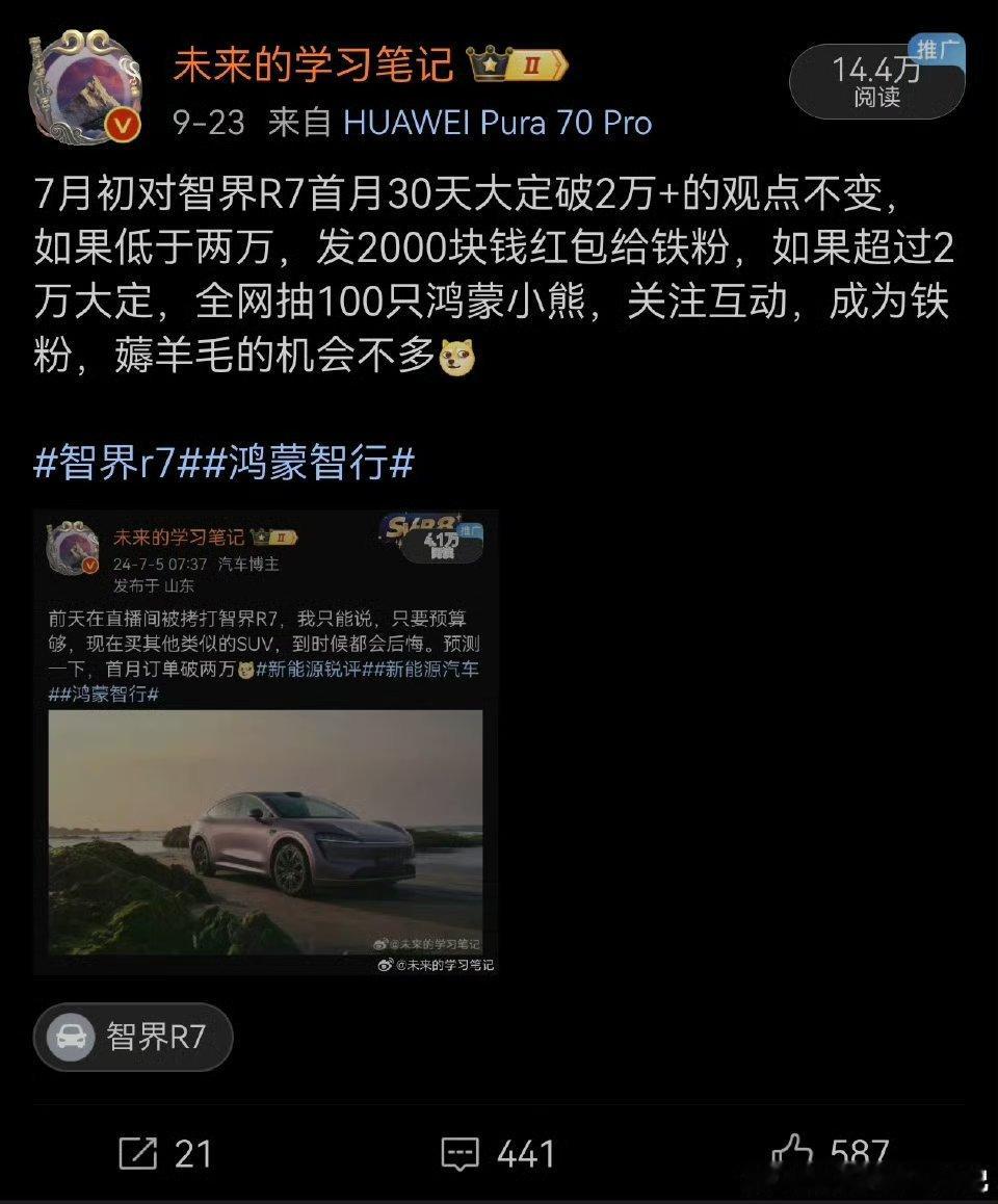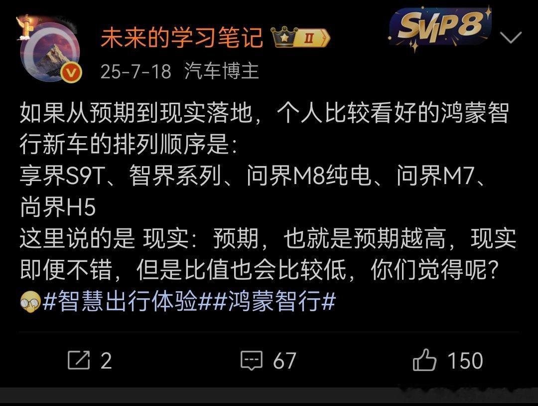 这里有一个逻辑,不要相信什么车会是博主吹起来或者踩下去的,博主没有这样的能量。但是博主应该有的是,能够辨别哪台车真的行,然后再去支持他。所以多让这样的博主提前看看新车,也是不错的选择,是吧鸿蒙智行