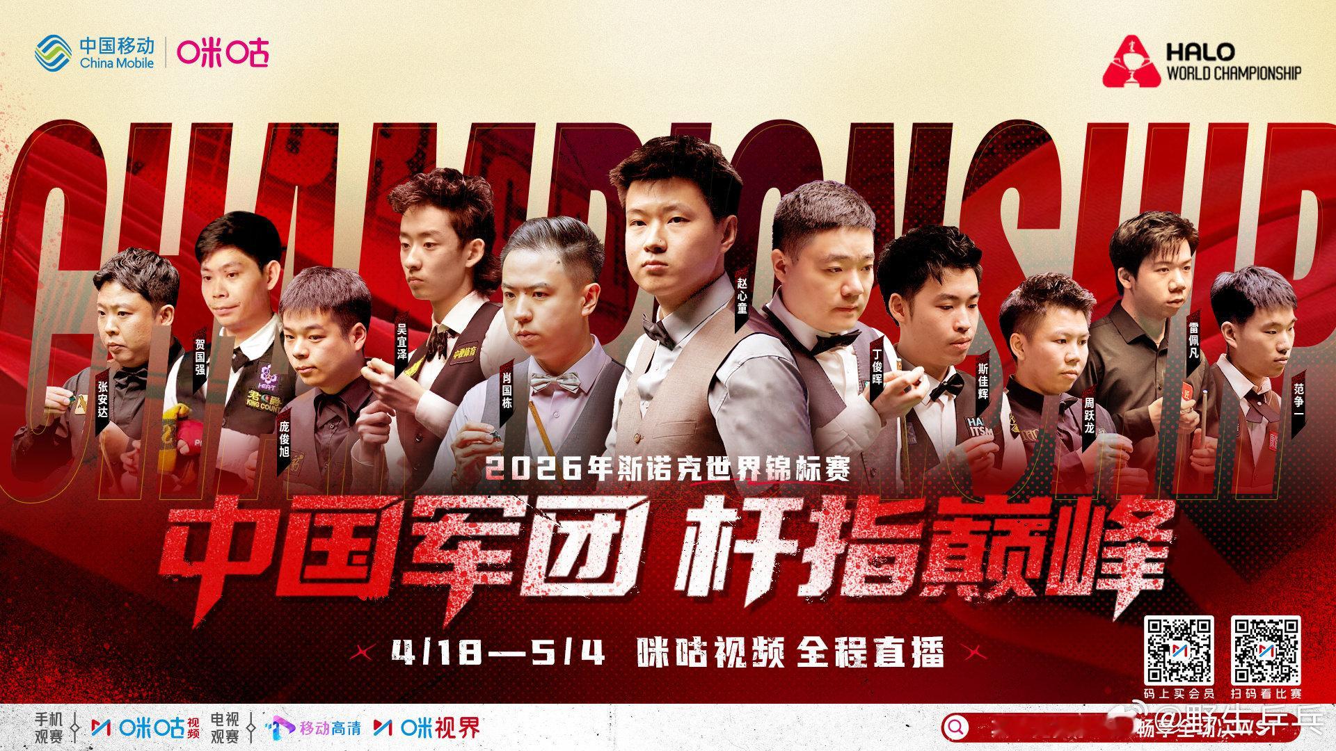 🌟4月18日-5月4日:2026年斯诺克世锦赛;🌟4月24日-5月3日:2026年汤姆斯杯&尤伯杯🌟4月28日-5月10日:2026伦敦世乒赛团体赛🌟5月1日-3日:国际泳联跳水世界杯总决赛🌟5月1日-6日:中超联赛第9、10轮🌟5月1日-4日:欧洲五大联赛争冠季🌟4月19日起:NBA季后赛 🌟5月2日、10日:UFC格斗之夜珀斯站、UFC328