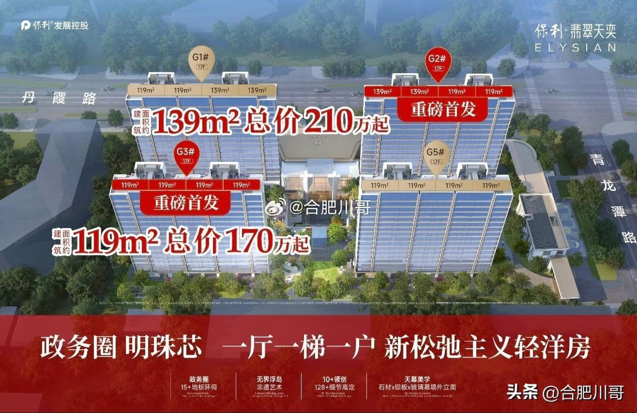 肥西F7,保利翡翠天奕备案价出来了~ 很多粉丝咨询之前的放风价170万跑哪去了,这个问题我特意当面问了项目的PM,人家说是折后最差楼层起,正常楼层都在190-220万,然后还补充一句:就这个价格卖的话项目整体还亏本(PM原话)~ 就问大家5200的楼面积,卖个18000均价,亏本吗[憨笑]?