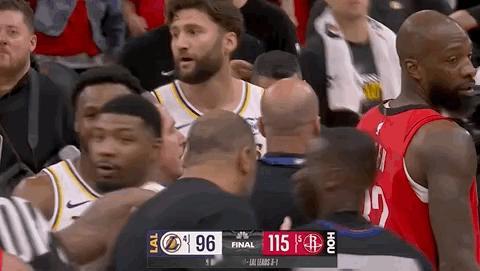 冲突不断!G5更加热闹了! 今天的系列赛G4,湖人队被火箭队全程碾压,最终以96-115惨败对手,无缘横扫,系列赛大比分来到了3-1,比赛重回湖人队主场。 值得一提的是,本场比赛最后时刻冲突不断,蒂耶罗、霍乐迪双双被驱逐,克勒贝尔也与火箭队球员发生了语言冲突。比赛结束后,湖人队多名球员与火箭队球员、当值裁判发生言语争执,斯玛特、范德比尔特、里弗斯、东契奇及主教练雷迪克都牵涉其中。这样一来,系列赛G5预计将更加热闹了!