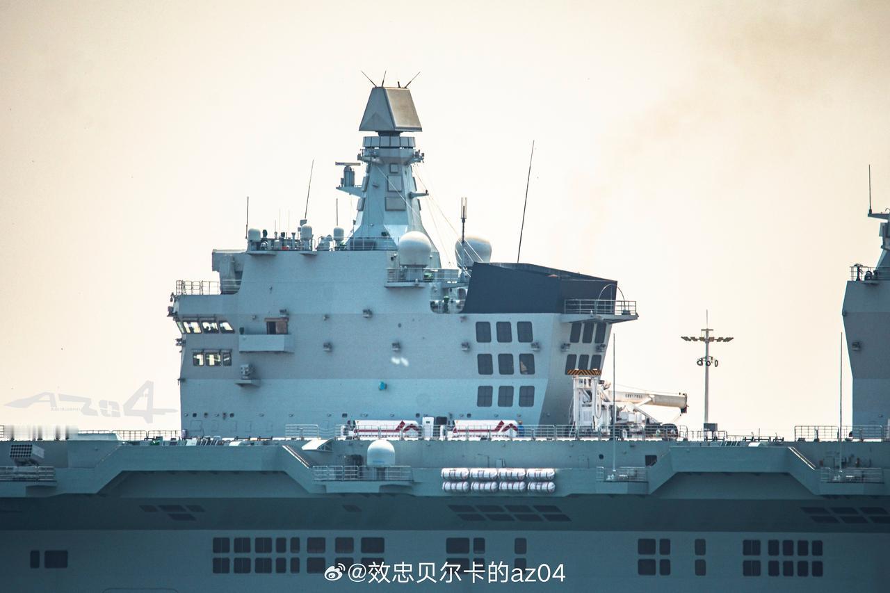 和之前的图片对比,这一次南下湛江港的076首舰四川舰,把前舰岛上的烟囱顶部完全涂黑了额,难道是准备南海完成舰载机试验之后,直接刷号宣布服役吗? 后舰岛桅杆顶部的那个圆盘,是不是舰载塔康地面站的辐射天线?为了引导舰载直升机和舰载无人机归航,舰艇上都需要装备塔康地面设备,为机载平台提供距离、方位引导服务。
