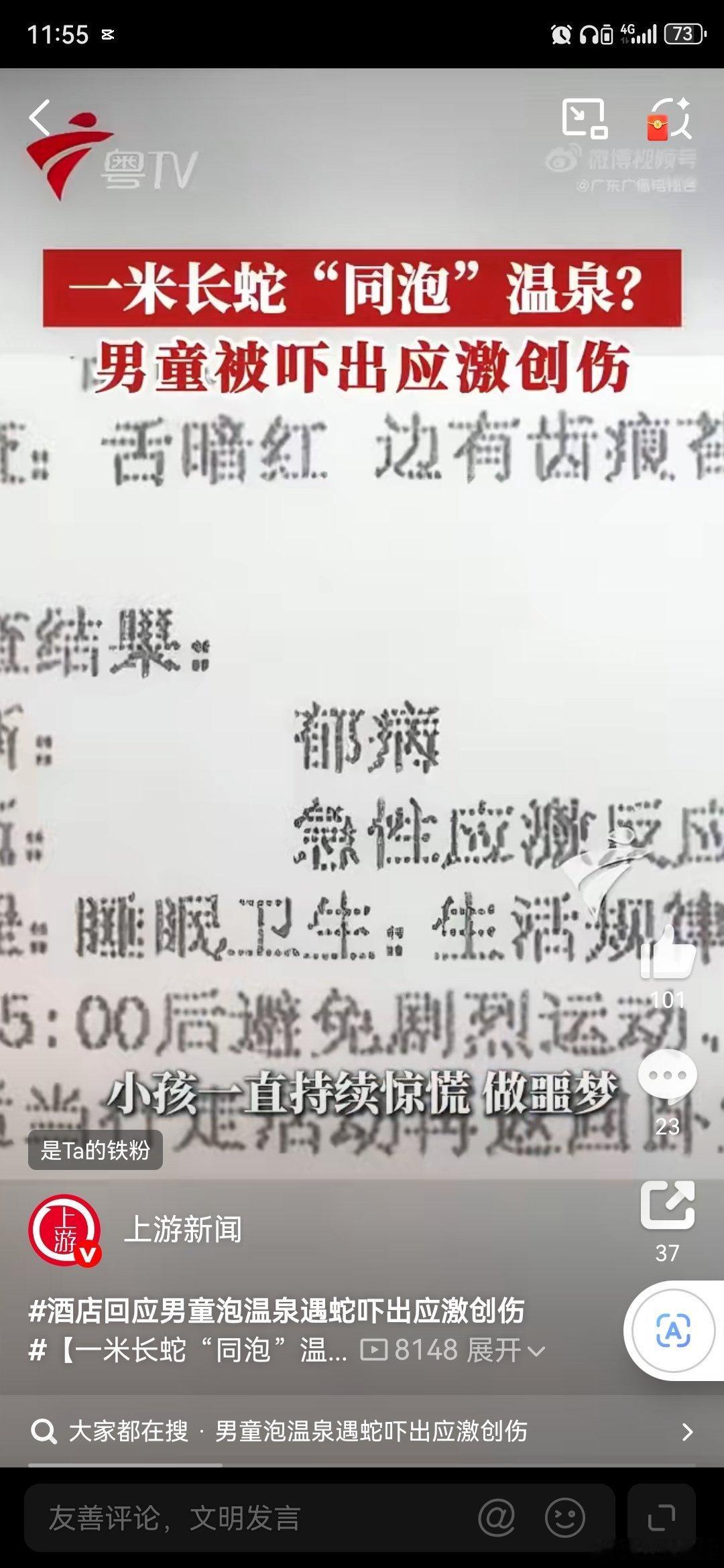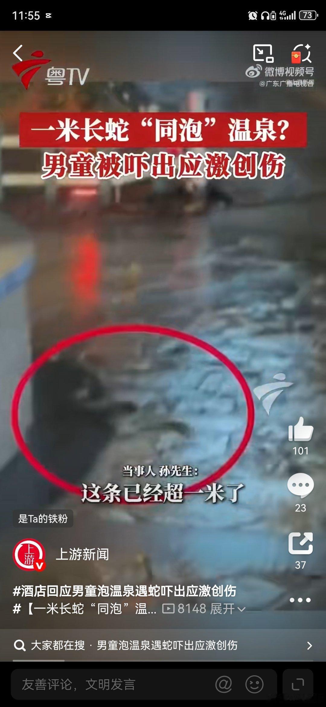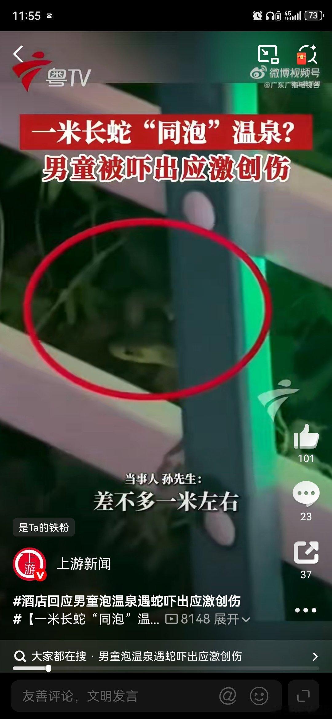 这家广州增城一家温泉酒店,在户外温泉区出现两条蛇,把孩子吓出应激创伤,还是有责任的