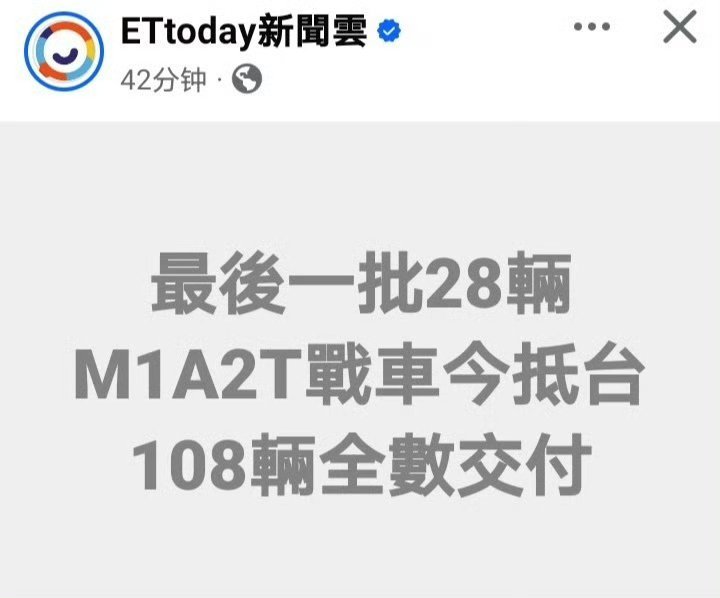 台伪采购的最后一批M1A2T坦克抵达台岛,108辆全部运达!