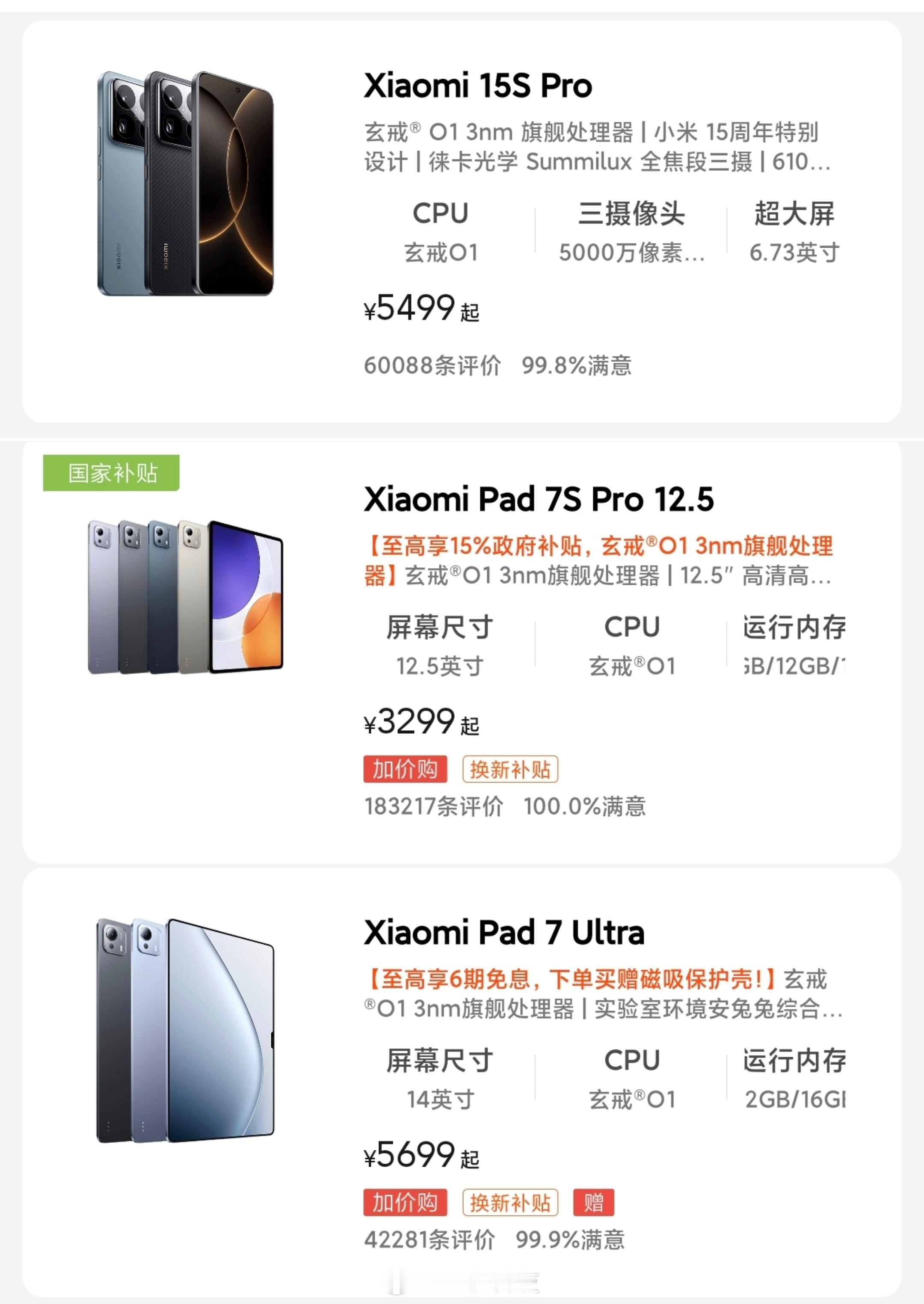 从小米销量评价数据看:小米15SPro,6万(只商城卖)小米pad7SPro和 Ultra,23万pad京东平台预计4万±其他平台总预计5万±