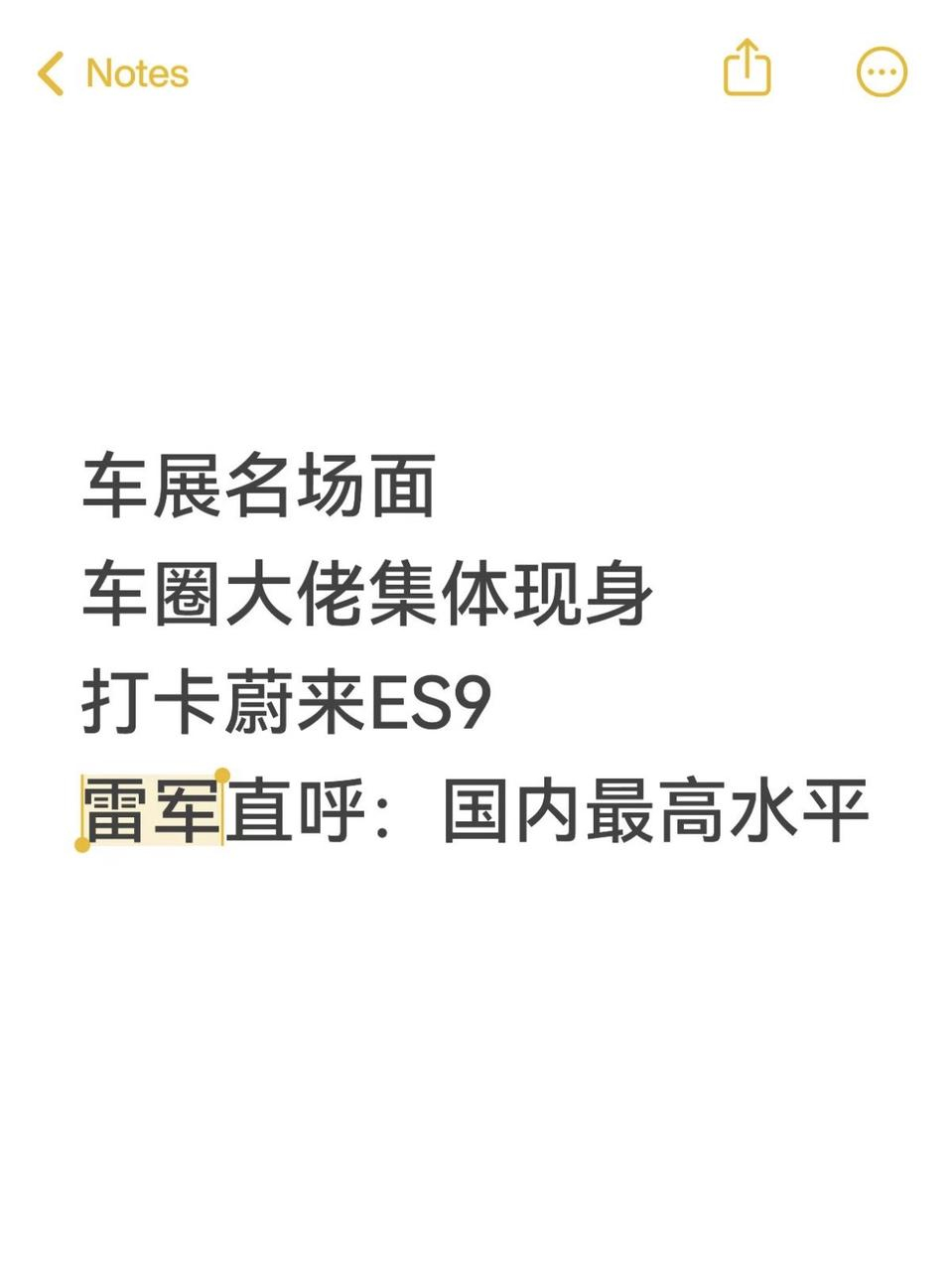 网友:看到你们惺惺相惜的样子,我就放心了笑死,北京车展李斌忙坏了吧一台ES9,接待不完的好朋友🧑🤝🧑先是雷军亲自试驾下车后直夸:国内最高水平后有何小鹏沉浸式感受ES9首创技术阵列式调光玻璃李斌握着好鹏友的手,送上祝福“一起大卖!一起加电”宁德时代曾毓群直接以准车主身份“验收”新车ES9,也是对隐私玻璃爱不释手我想,这才是中国车企该有的样子!!!大佬们虽然是竞争对手却也是见证彼此成长的伙伴这波惺惺相惜,真的挺让人心生感触的希望国产品牌们能在不断切磋中共进大家一起书写中国传奇👍