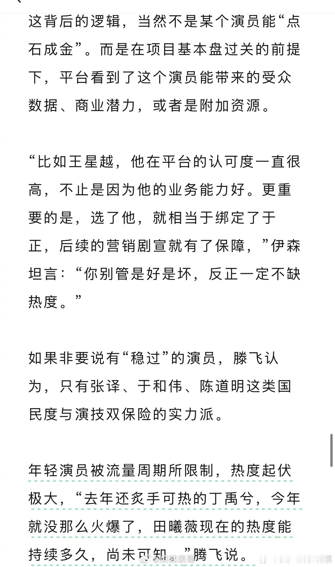 还提到流量换代很快,去年的丁禹兮今年就不确定,还有今年的田曦薇也不是什么保障。