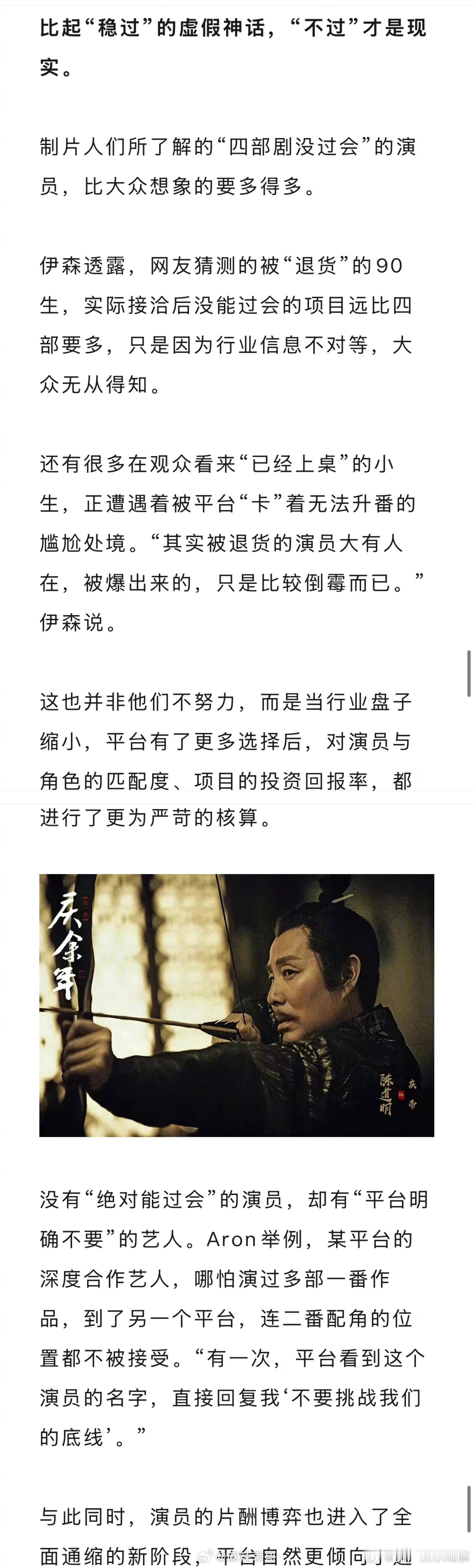 这个艺人是去年播出成绩不好的演员。
