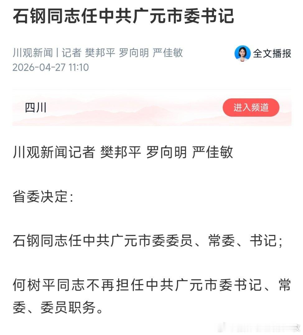 石钢任广元市委书记。