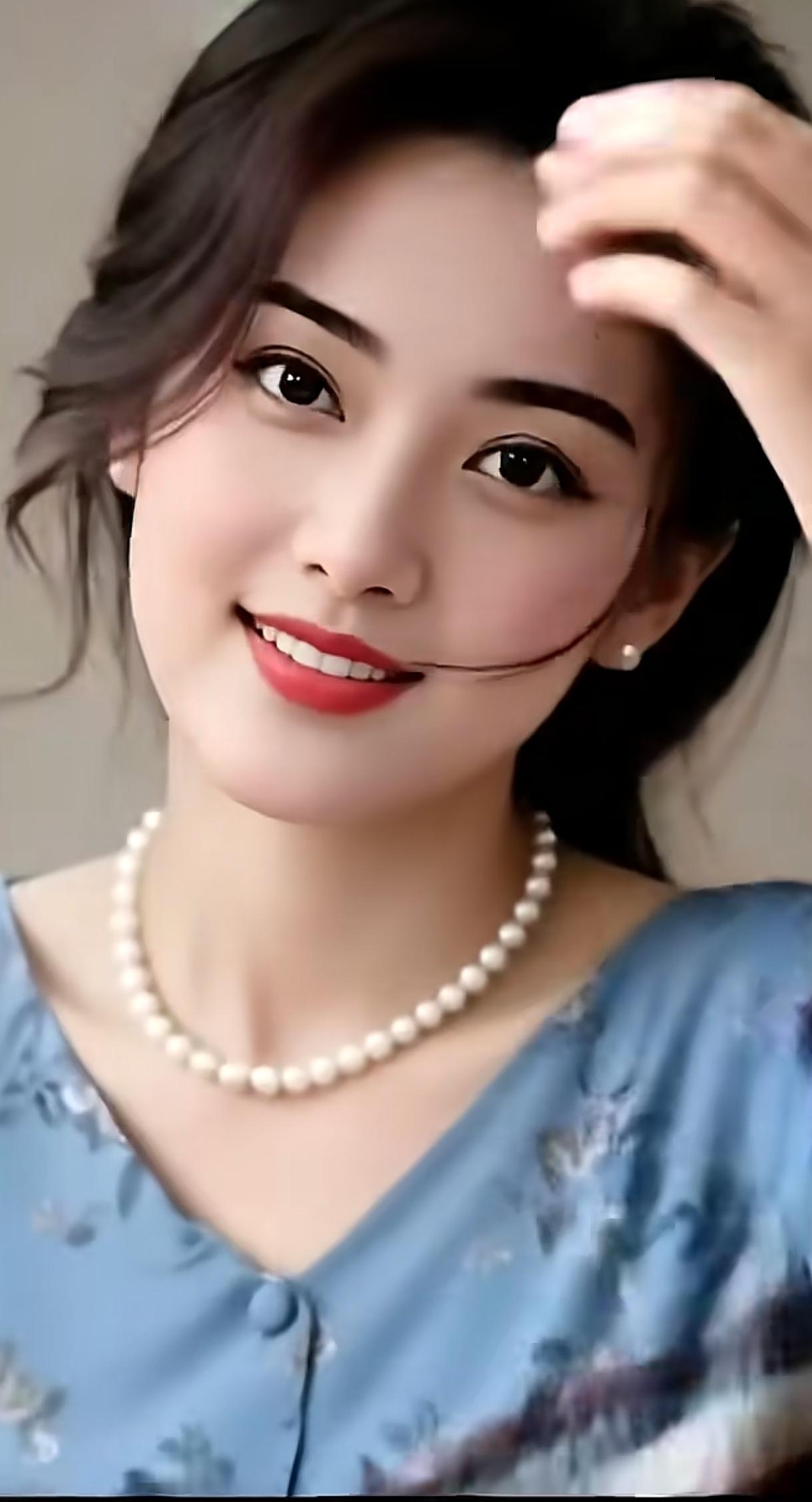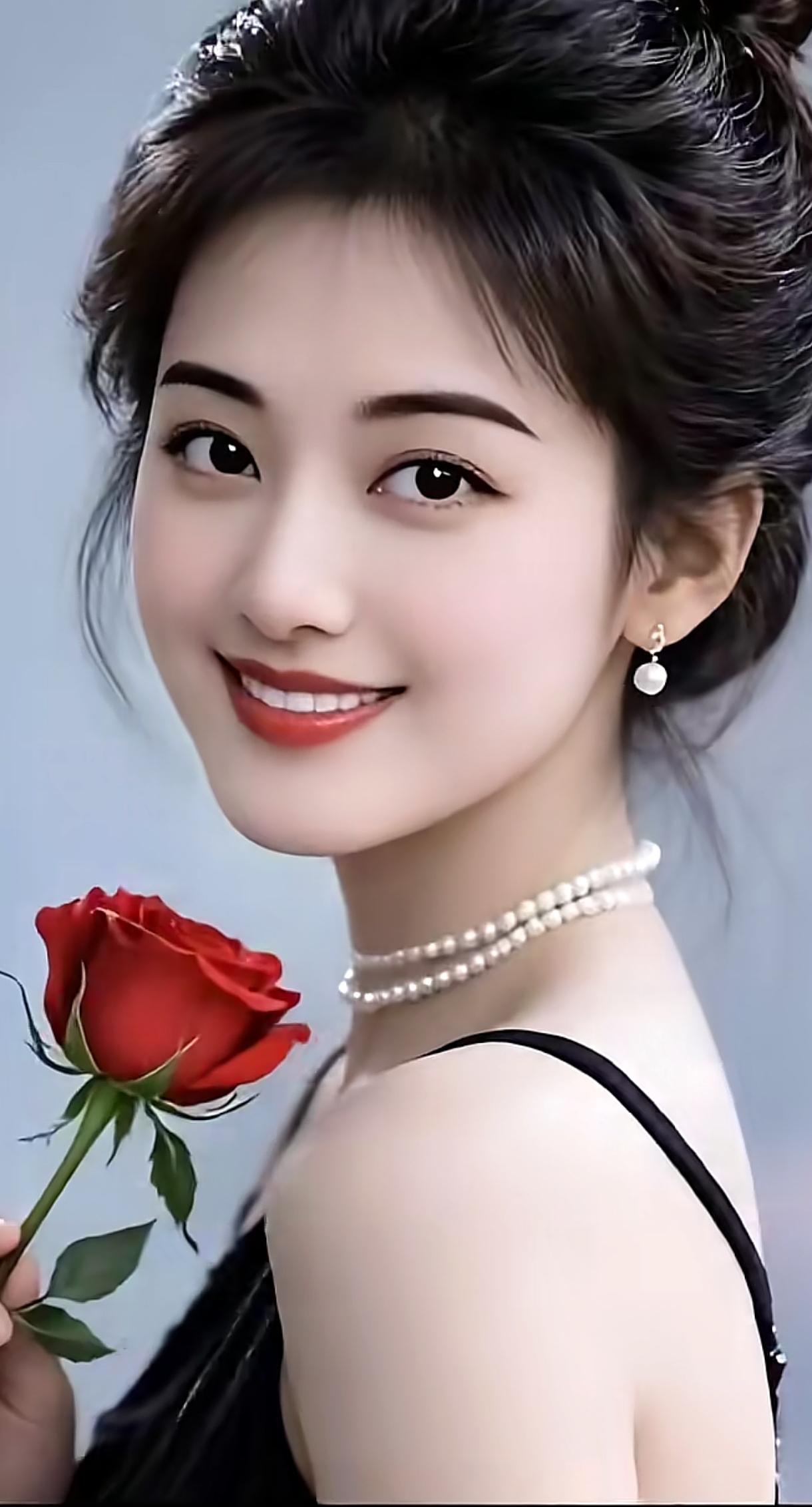 优雅红玫瑰,甜美笑容,珍珠项链,黑裙搭配,女神范儿十足!🌹💄👗分享一张最近随手拍的照片 黑裙丽人写真 露肩黑裙写真