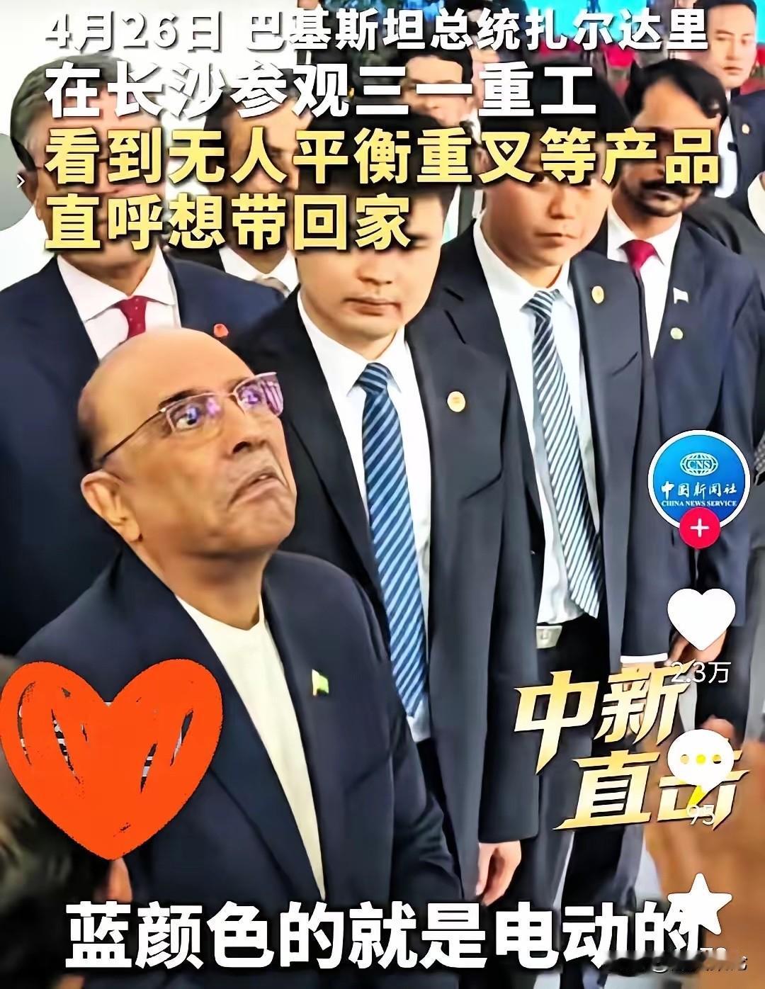 本以为巴总统来长沙吃小龙虾,没想到是来看挖掘机!一眼看懂时代折叠的残酷真相😂 4月26日,巴基斯坦总统扎尔达里到访长沙,全网都在调侃“是来嗦小龙虾的”,结果人家直奔三一重工,盯着无人平衡重叉车、新能源工程设备两眼放光,当场直言“想直接打包带走”,还追问“为啥三一还没去巴基斯坦建厂”。 有人调侃这是“刘姥姥进大观园”,但笑着笑着就懂了:这哪里是好奇,分明是落后国家对实业兴邦的极度饥渴,是穷怕了的国家,对工业硬实力的本能渴望。 回望几十年前,咱们何尝不是如此?八九十年代,中国工业基础薄弱,到处求爷爷告奶奶引进技术,外资企业来考察,我们也是这般满眼羡慕、小心翼翼。 如今风水轮流转,中国成了全球唯一拥有联合国全部工业门类的国家,工程机械产量占全球60%,湖南更是“世界工程机械之都”,三一、徐工、中联重科的设备卖遍全球。 扎尔达里的眼馋,背后是巴基斯坦的现实困境:底子薄、工业弱、基建滞后,电力短缺、交通落后,处处捉襟见肘。但他比谁都清楚,工程机械就是工业根基,工业根基就是国防底气——平时能修路建厂,战时能快速改造为军工产能,挖机的液压系统和坦克同源,起重机底盘可改军车,高端制造能力直接决定国防上限。 中巴经济走廊启动以来,中企帮巴基斯坦建了萨希瓦尔电站、拉合尔橙线地铁、瓜达尔港等重大工程。尤其是萨希瓦尔电站,22个月就建成投产,彻底缓解巴国电力危机,被称为“巴基斯坦电力史上的奇迹”。扎尔达里这次看设备,本质是举国押注大基建,想复制中国“要想富先修路”的逆袭路,用工程机械砸开工业化大门。 这就是“时代折叠”的残酷与真实:曾经我们仰望别人,如今别人仰望我们。没有凭空而来的强大,只有实打实的工业积累;没有凭空而来的底气,只有硬邦邦的制造实力。 别小看一台挖掘机,它背后是完整的产业链、硬核的工业技术、扎实的国防潜力。扎尔达里的“眼馋”,恰恰印证了一个真理:实业兴则国家兴,工业强则国防强。