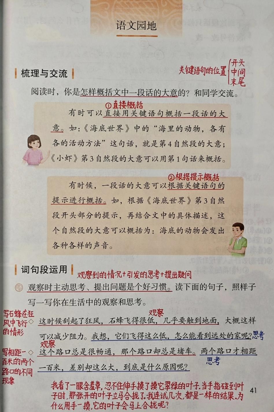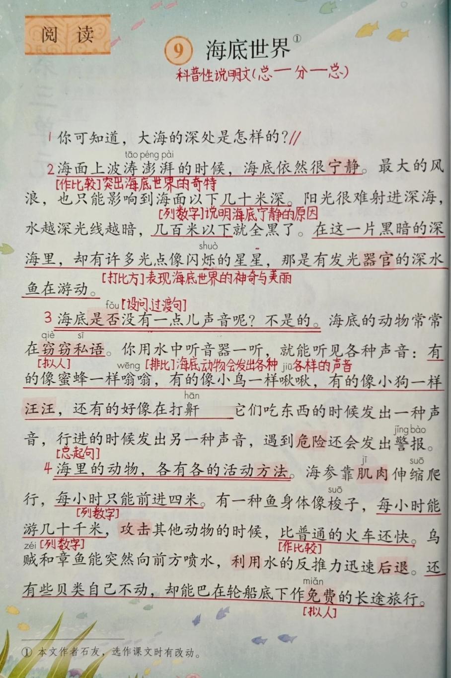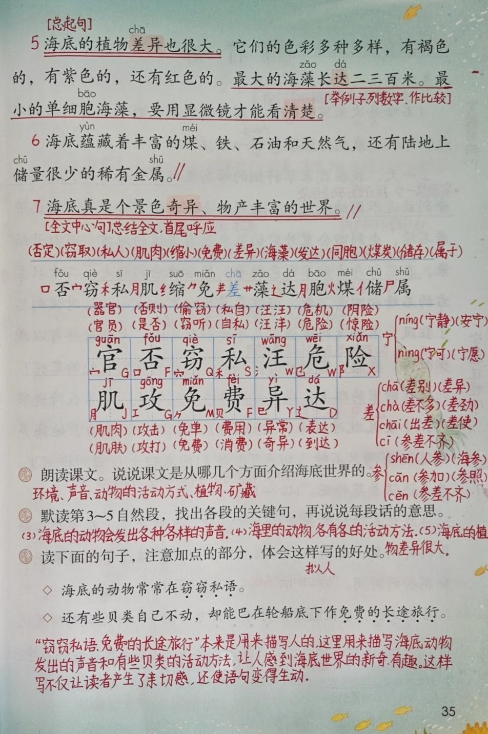 三年级下册语文,第三单元《海底世界》《石蜂》《小虾》《语文园地三》课堂笔记,收藏备用