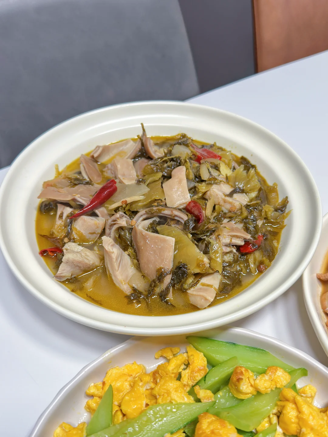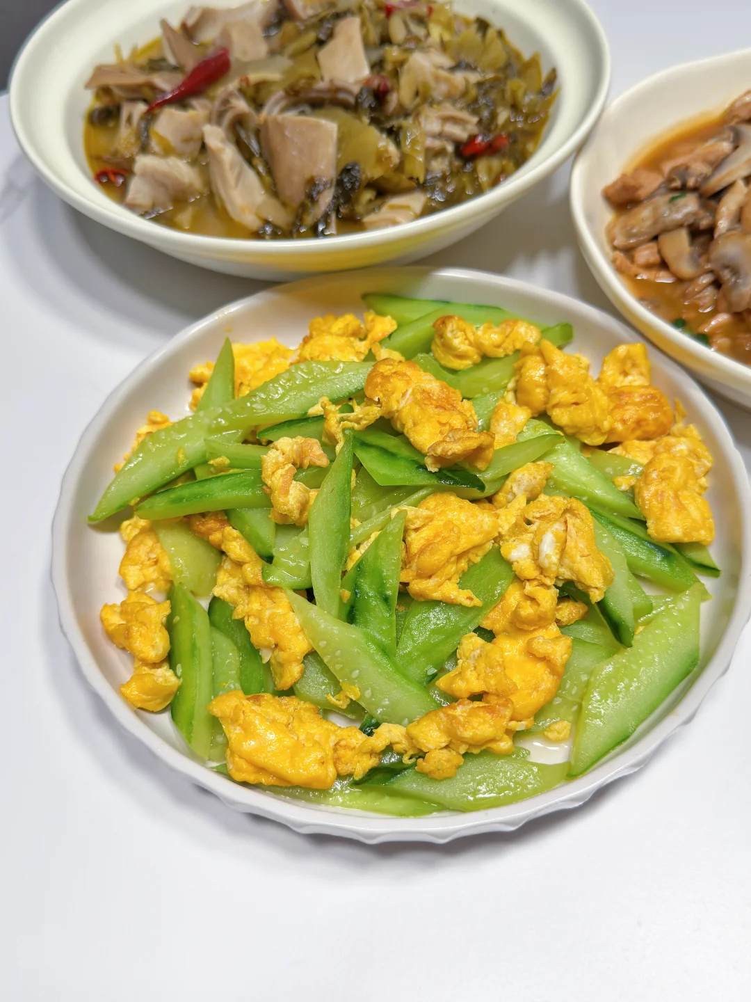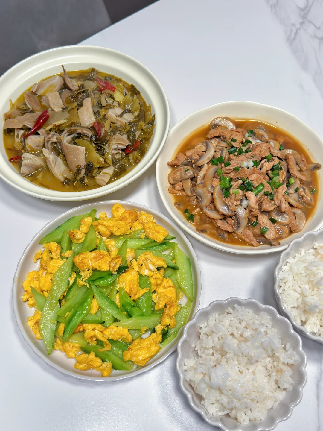 🍃每天都要记得按时吃饭哦 【今日份菜单】 ⭐️⭐️⭐️蘑菇肉丝 ⭐️⭐️⭐️黄瓜鸡蛋 ⭐️⭐️⭐️酸菜猪肚 ⬅️左滑附图文教程