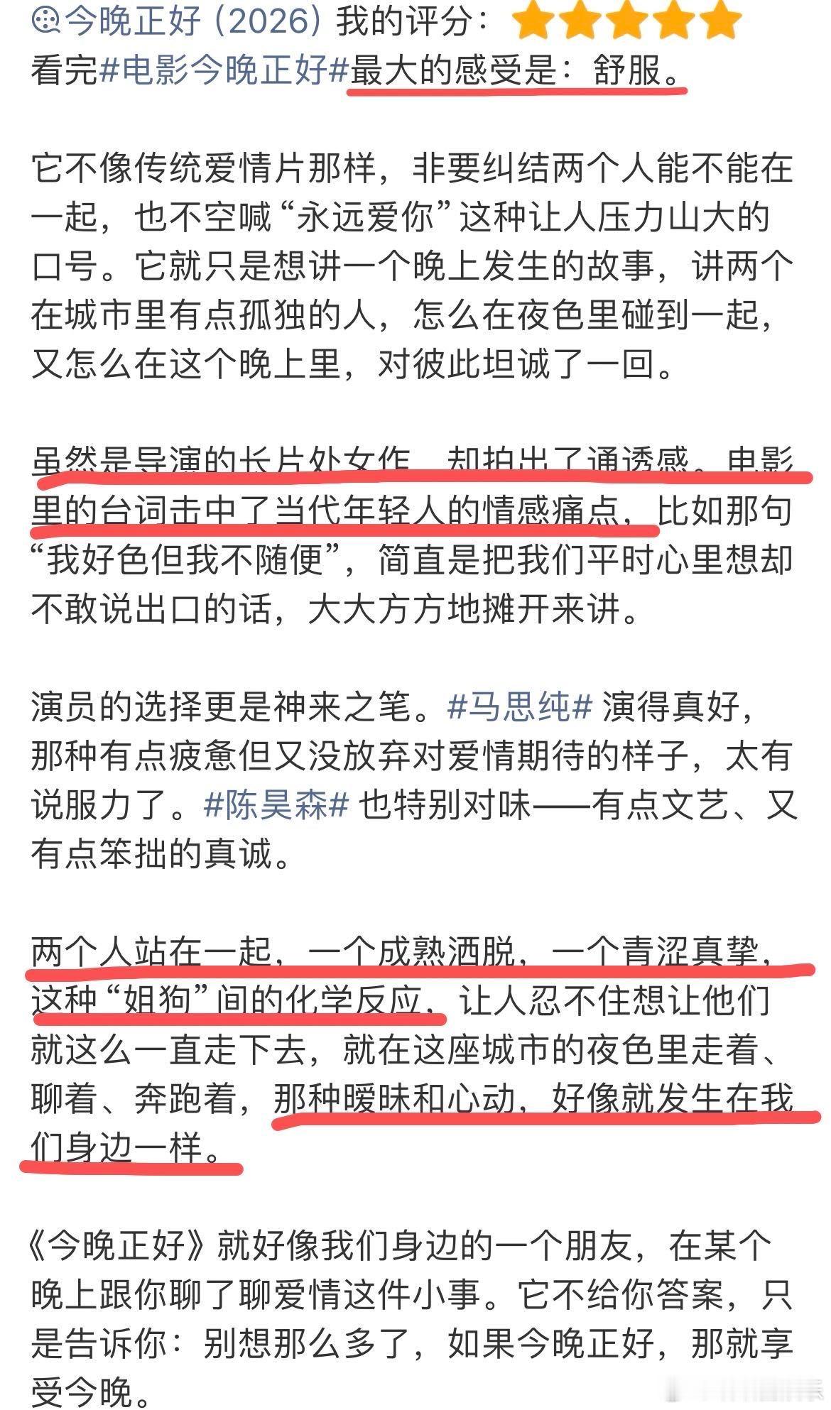 马思纯拍过尺度最大的亲密戏 马思纯在《今晚正好》里台词又撩又敢,没有半点含糊,把成熟女性的态度和欲望说得坦荡又自然,这种表达真的很少见。