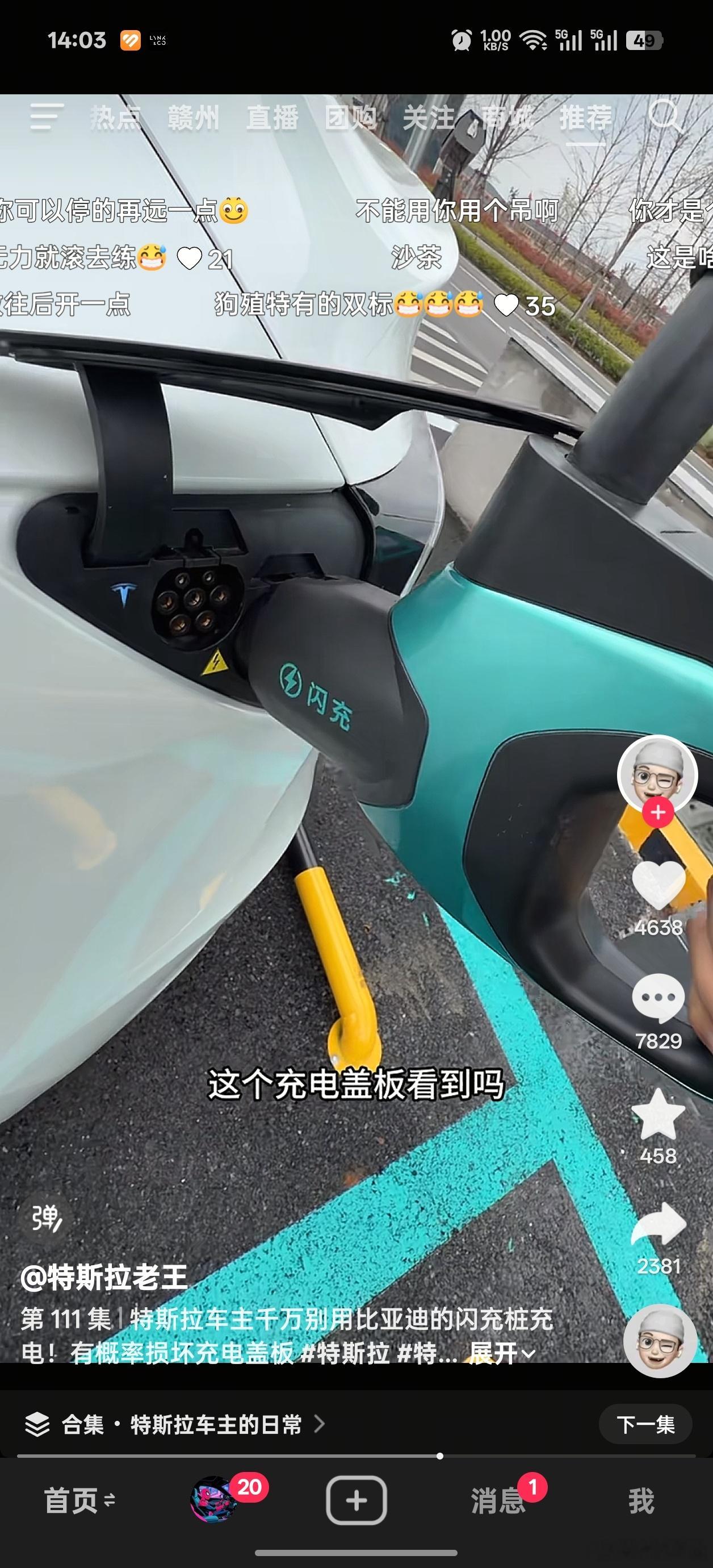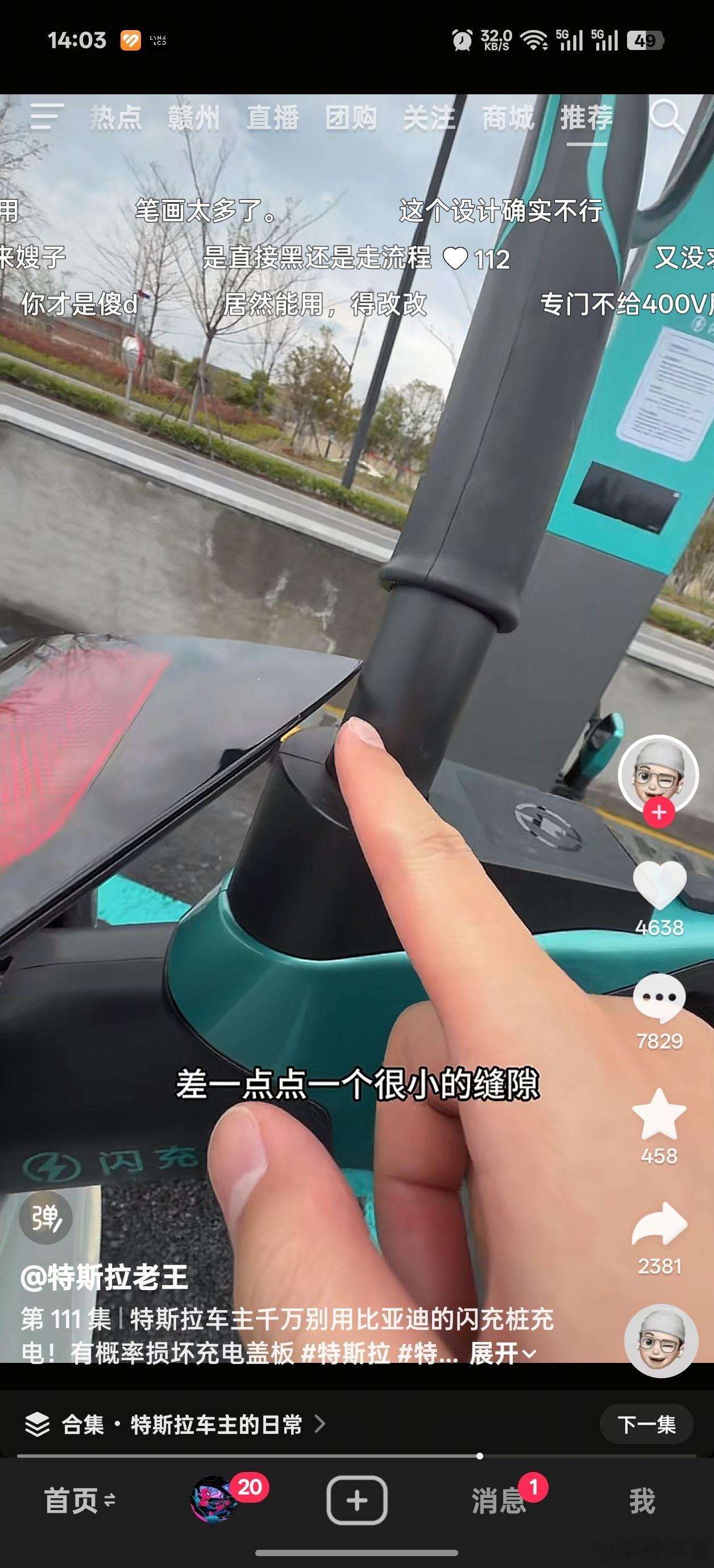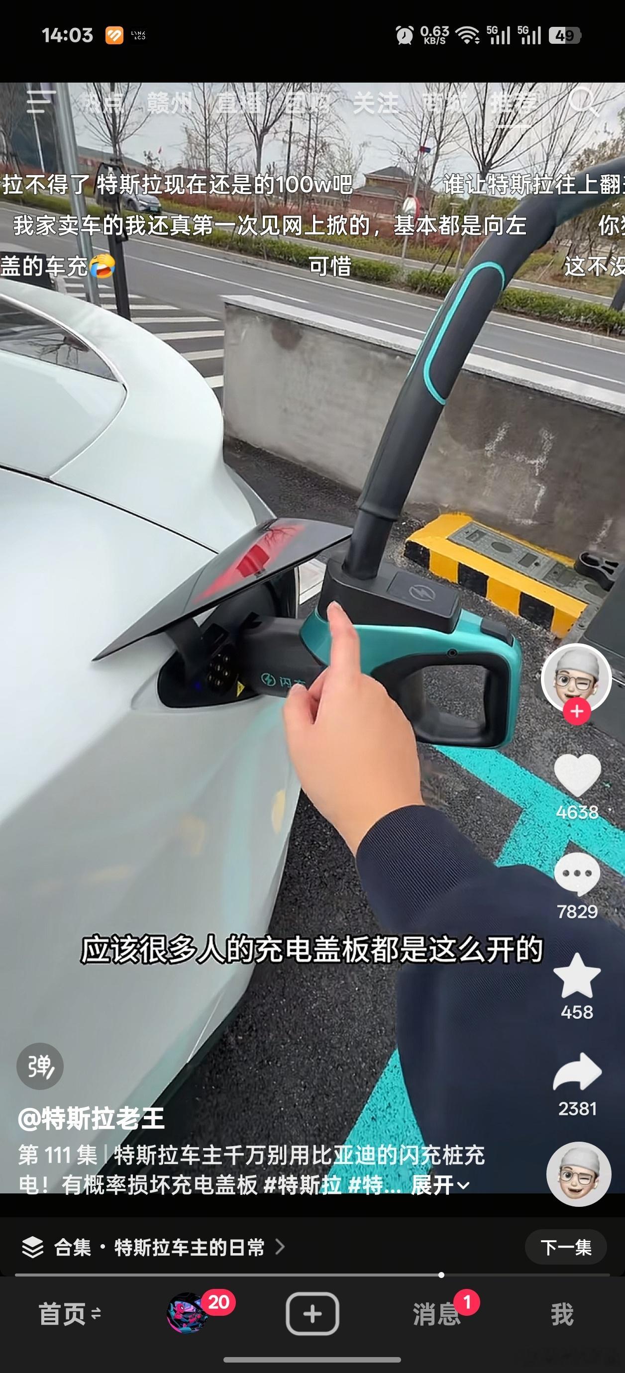 笑死,刚刷到个视频,一位特斯拉车主吐槽比亚迪闪充桩充电枪,会打到他车子向上翻的充电盖板。