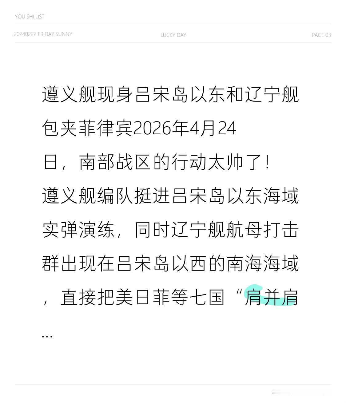 遵义舰在吕宋岛以东和辽宁舰包夹菲律宾 2026年4月24日,南部战区的行动太帅了!遵义舰编队挺进吕宋岛以东海域实弹演练,同时辽宁舰航母打击群出现在吕宋岛以西的南海海域,直接把美日菲等七国“肩并肩2026”联合军演给夹击了。这次美日菲把军演区域设在靠近中国岛礁的巴坦群岛附近,明显挑衅。但他们没想到解放军反包围,遵义舰编队扼守菲律宾海要冲,切断美军增援通道;辽宁舰编队锁死美日菲进入南海的可能。美菲这次军演兵力达1.7万人,日本还首次正式派成建制作战部队。解放军这波操作直接让菲律宾急得团团转,也宣告在中国家门口搞威慑的时代结束了!