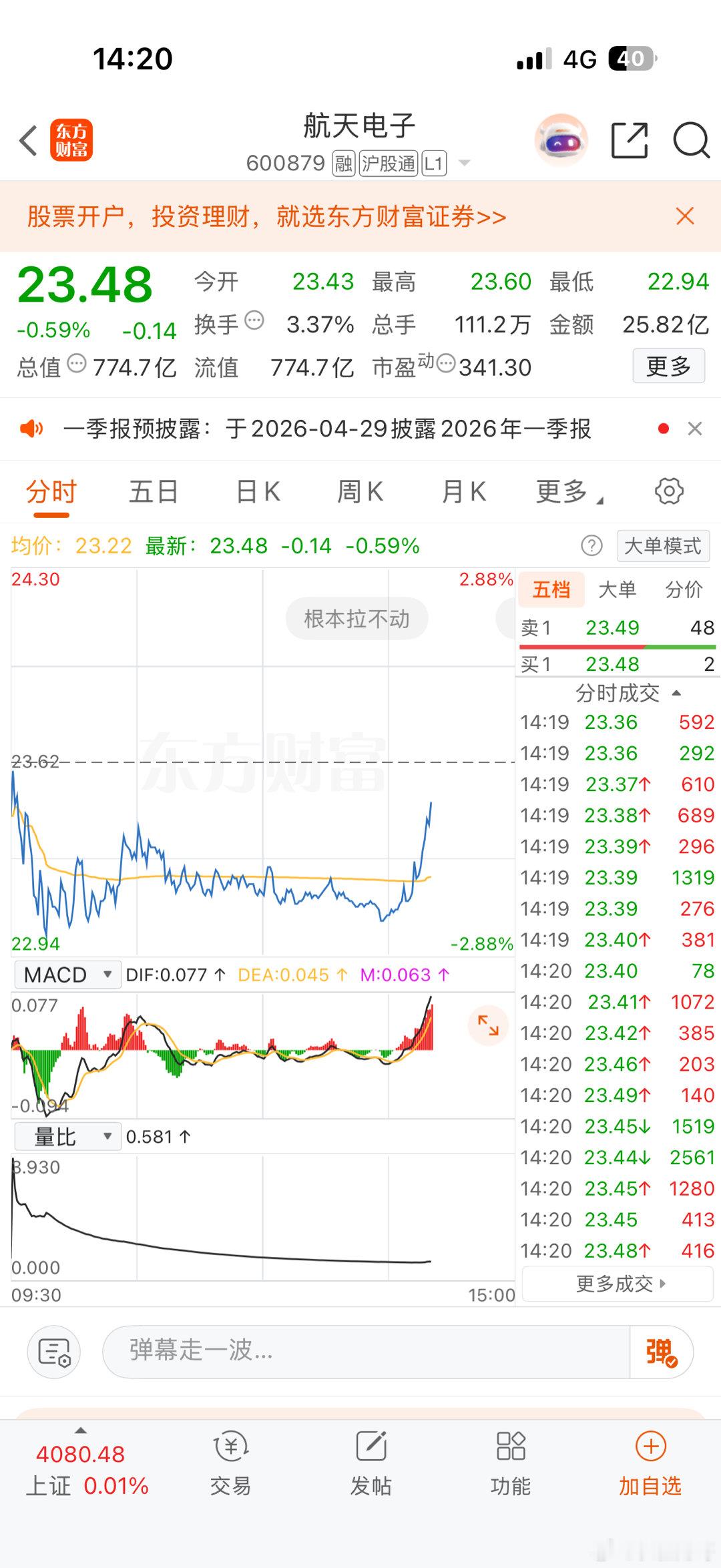 尾盘逢低上🚘航天电子600897股市有风险,仅供参考