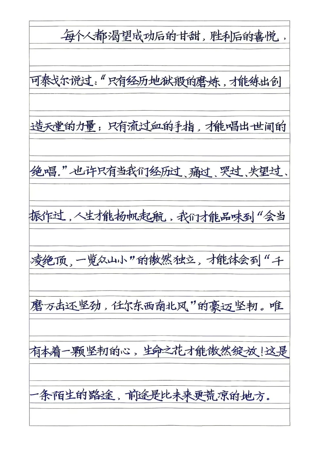横线格书写训练小短文,写一行空一行,按照方法训练,注意笔直,大小高低排列技巧,每天坚持五到十分钟,一个月左右会有一些进步的。