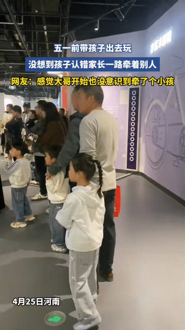 河南,五一前,妈妈带孩子出去科技馆,接电话的功夫孩子没了,妈妈急得团团转,没想到,意外发现孩子正牵着一位陌生大叔的手,妈妈这才意识到孩子是认错人了,妈妈没有揭穿,而是继续让孩子牵着陌生大叔的手看完了整个表演! 有网友提醒道:也许不光是孩子认错了家长,估计家长也认错了孩子! 还有网友调侃:还别说,孩子和大叔真像! 视频中,小女孩正聚精会神的看着表演,同时她那只稚嫩的小手又紧紧的抓陌生住大叔那只粗糙的大手,大叔往前挪动一点,她也跟着挪动一点,身怕跟丢了,来到人多的地方,小女孩还会用双手去抱住大叔的胳膊! 直到小女孩的妈妈来到身后,大叔才意识到自己拉错了孩子,大叔先是咧嘴一笑,他的笑容还是那么的灿烂,露出两排洁白的大白牙,随后又低头看看不认识的小女孩,大家像没事人一样继续看表演,直到表演结束了,大叔才把小女孩交给妈妈! 看过这个视频,真的是很暖心,幸亏小女孩妈妈是个明白人,要不然误会可就大了! 不过,这件事也挺有意思的,你说小女孩全程牵着大叔的手,这个大手和妈妈温柔的小手,事实感觉能一样吗?肯定不一样,为什么孩子没有分辨出来呢?那是一种信任,一种发自内心的安全感! 再来看看这位大叔,也绝对称得上是一位“暖男”,他明知自己不认识这个小女孩的情况下,依然耐心的陪伴着,这一点就值得点赞,换作是别人,恐怕早就撒手了吧! 孩子的世界是很小的,他们的世界只有父母,对外面的世界正在一点一点探索,这位陌生大叔给了小女孩安全感,让她更加信任这个世界,感受这个世界的美好,温暖!