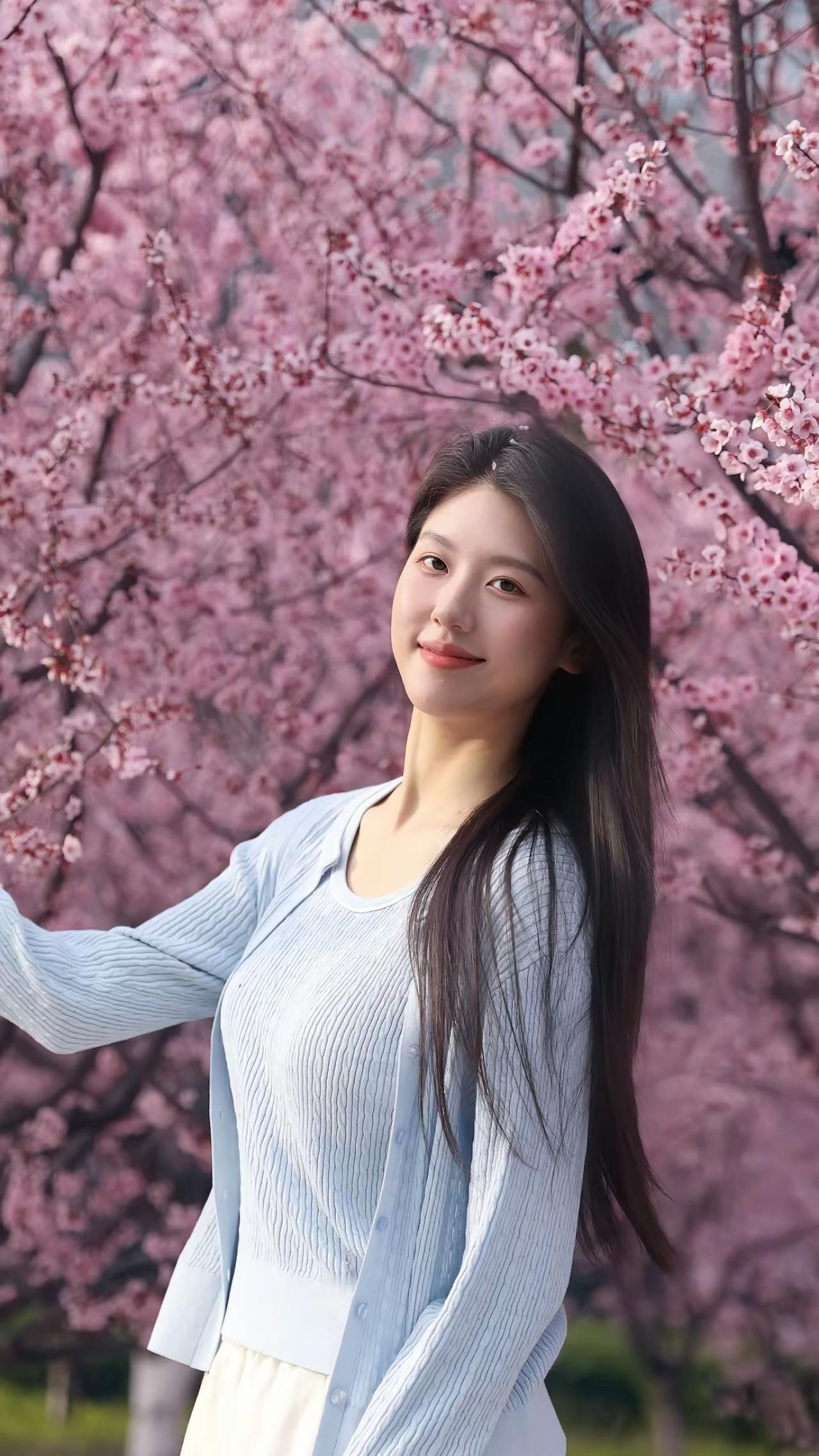 谁懂啊!春日和樱花的适配度直接拉满✨ 浅蓝开衫配白裤子,一头长发被粉色花海轻轻裹住,风一吹,连发丝都沾着淡淡的花香,走路都像踩在落满花瓣的云朵上。 春天的浪漫从来都藏在细节里:枝头盛放的花簇,不冷不热的温柔晚风,还有随手一拍都自带柔光滤镜的松弛感。原来最治愈的春景,从来都不用刻意找,走在路边就能撞个满怀。 你们的春日照片里,藏着哪些限定浪漫?评论区晒出你的春日瞬间吧~