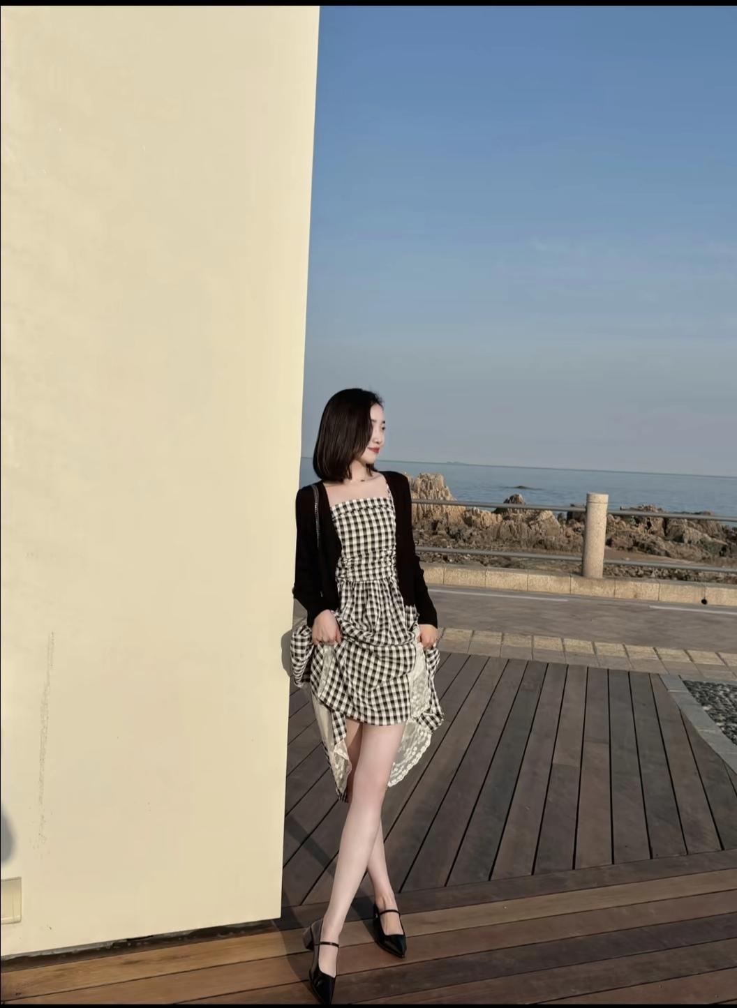 谁懂啊!这套海边穿搭直接焊在身上了!黑白格纹吊带裙自带复古松弛感,暗藏的蕾丝裙摆温柔又藏着小心机,外搭一件基础款黑色针织开衫,既能应对早晚温差,又秒变韩系温柔学姐风。 搭配黑色玛丽珍鞋,通勤、出游都适配,不费力就赢很大。日常想穿出质感,这种“基础款+小细节”的万能公式,真的可以直接抄作业! 你们最近挖到了什么宝藏穿搭?评论区晒出来一起借鉴呀~