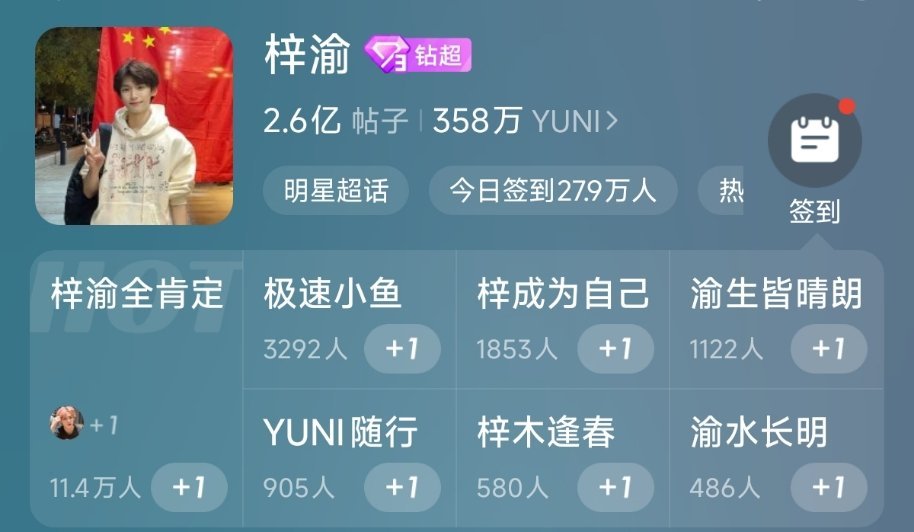 钻三超话状态数量,是不是能看出超话热度是不是真实的梓渝11.4万田栩宁7.2万肖