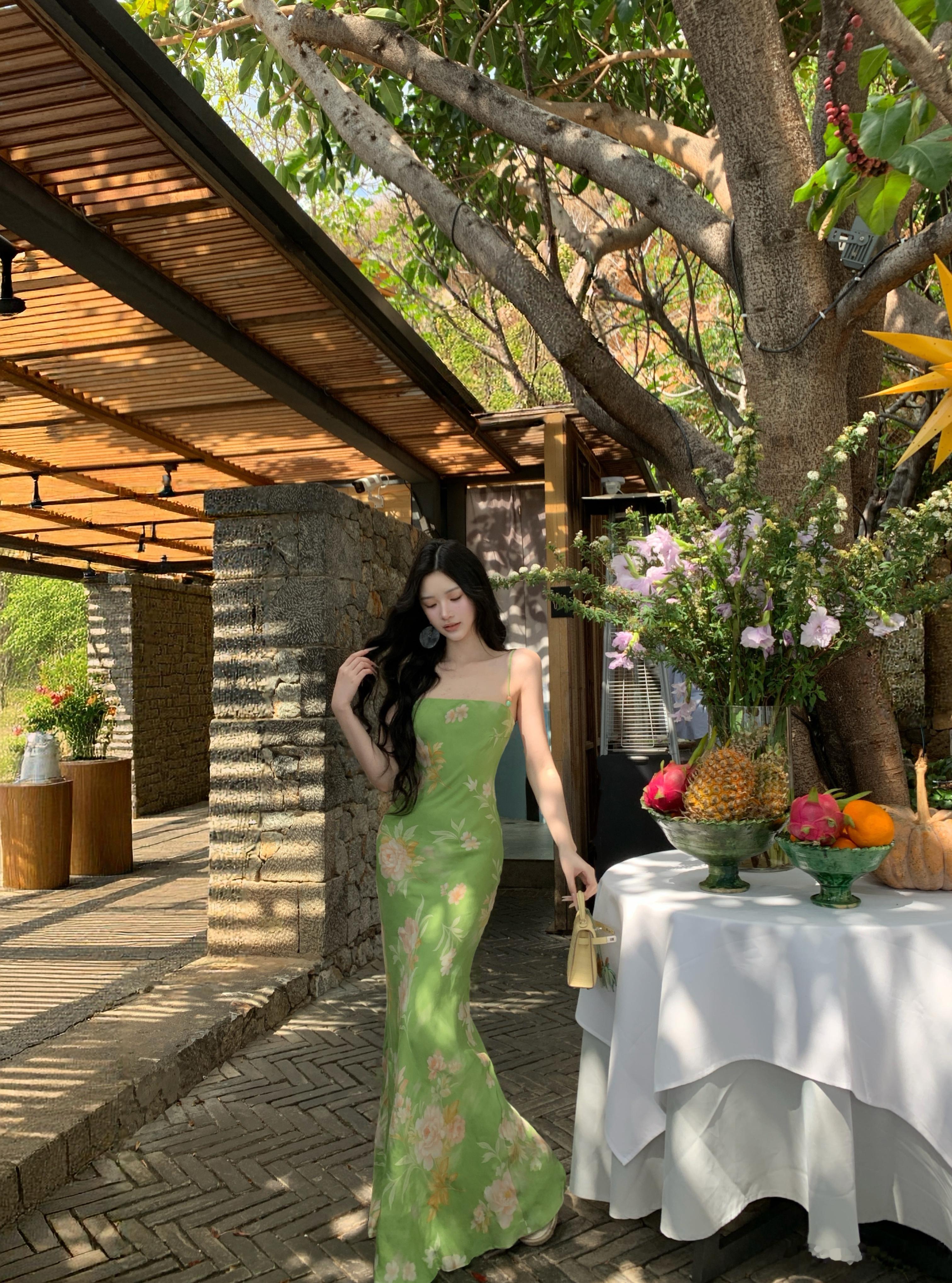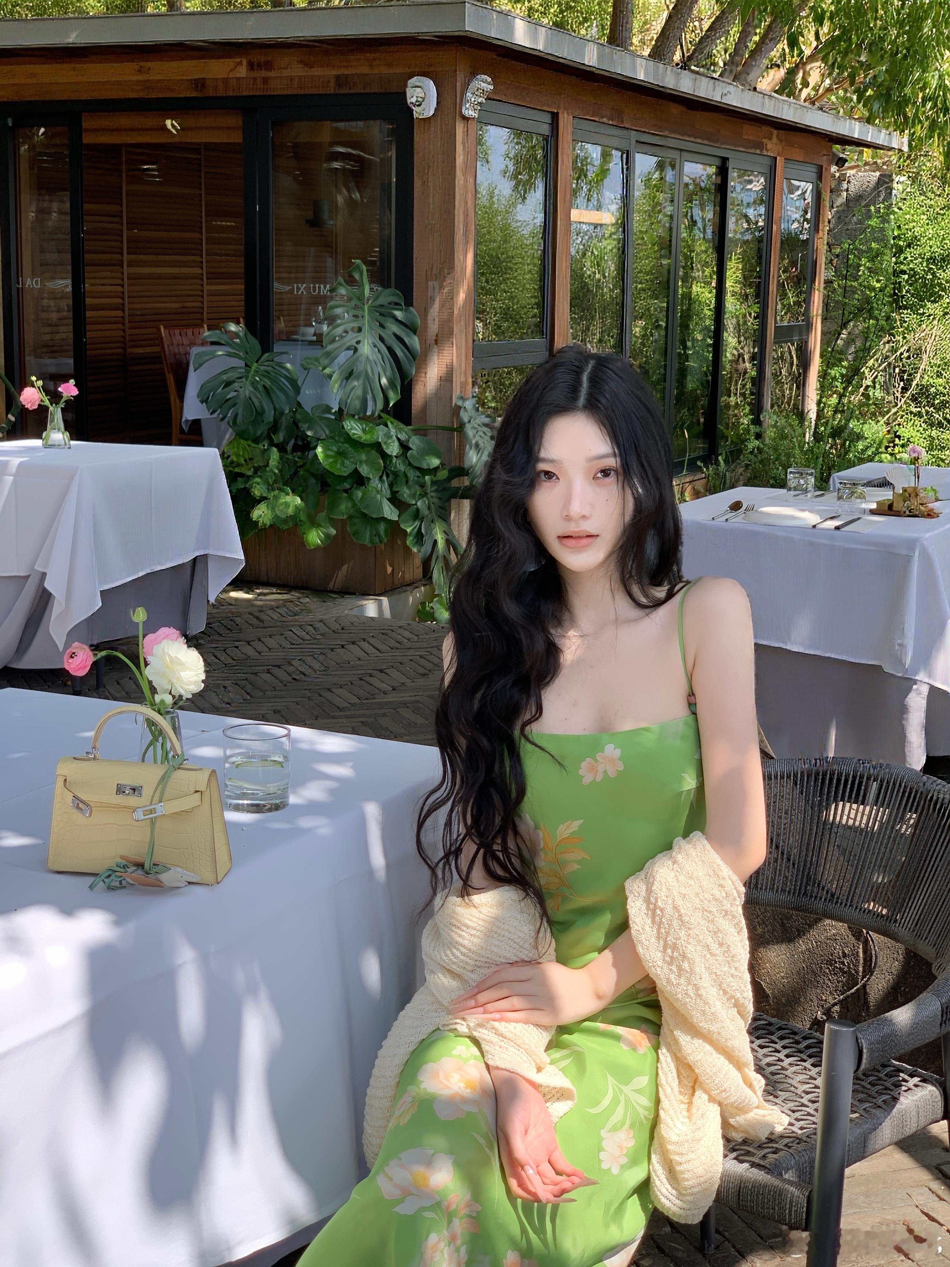 𝑴𝑶𝑺𝑺 𝟒.𝟐𝟖/𝟐𝟎:𝟎𝟎𝒑𝒎【碧涧棠春】🧚♀️☘️度假风铜氨人丝吊带连衣裙可调节细肩带设计,自由调节松紧度,兼顾舒适与美观,领口内置隐形防滑条,牢牢贴合肌肤,彻底告别走光烦恼,日常活动更安心。细吊带搭配撞色串珠装饰,增添灵动细节感;后背牛筋,适配不同身形,穿脱便捷,显瘦不紧绷。新中式穿搭