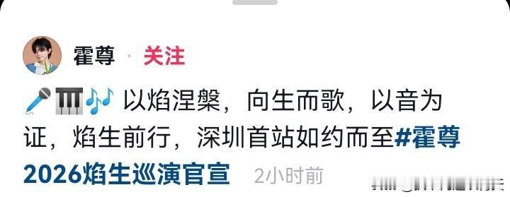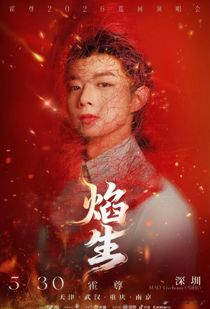 沉寂四年之久的霍尊终于官宣要开演唱会了!演唱会的主题叫“焰生”大意就是涅槃重生的意思。 演唱会首站选定深圳,并于5月30日正式开唱。演唱会门票将于5月8日12点18分在大麦网正式开唱。 霍尊最具代表性的作品就是《卷珠帘》,可以说是国风音乐的天花板,他极具穿透力的嗓音宛如天籁,空灵而动听。期待他凤凰涅槃,王者归来!
