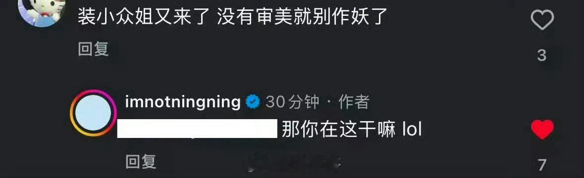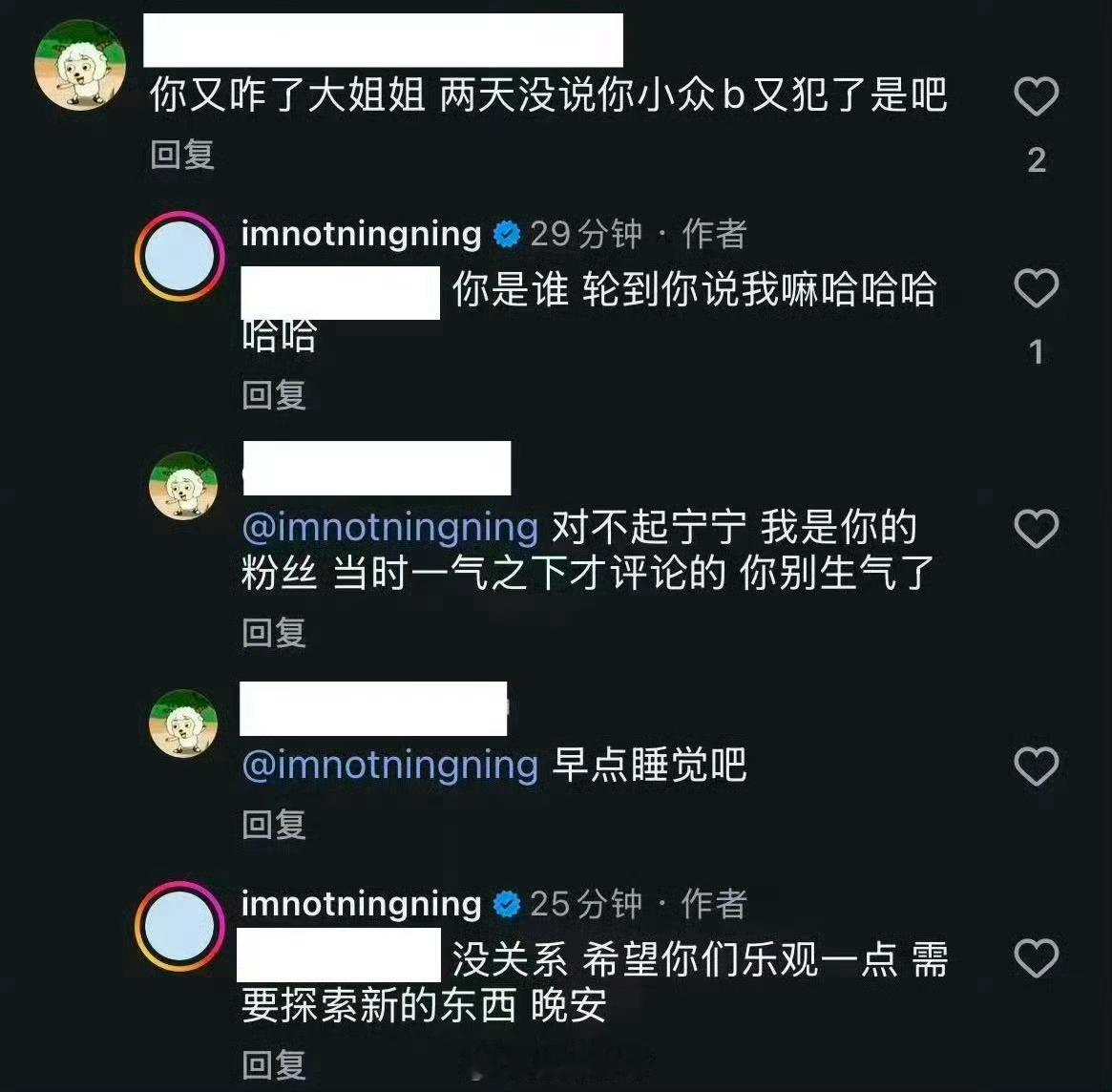 宁艺卓昨天发了擦边,粉丝指出后她直接回怼粉丝了,说「希望你们乐观一点,需要探索新的东西」