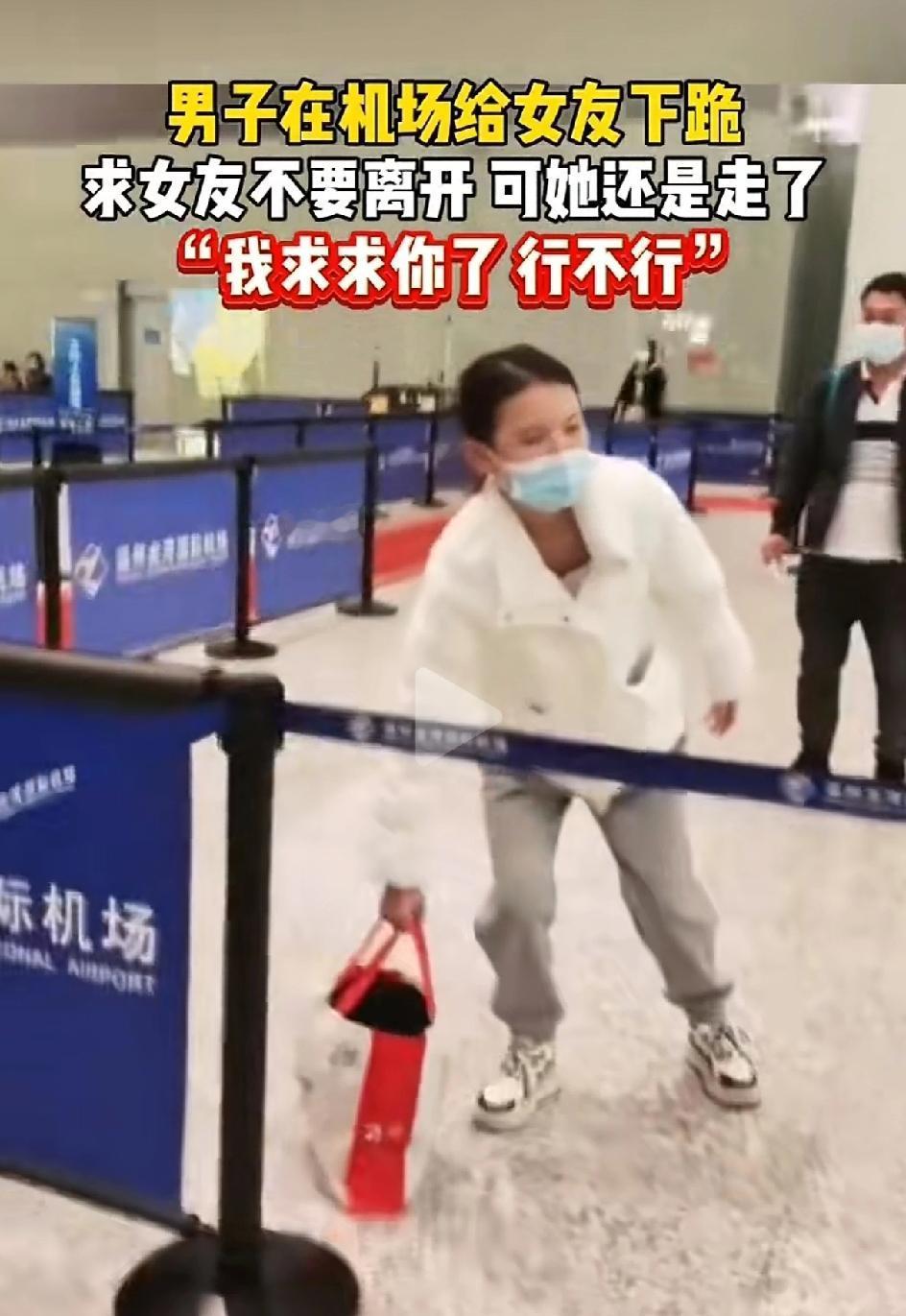 在某国际机场,一男子下跪求女朋友不要走。女的毅然决然的,头也不回的走了。男的一边哭一边哀求,跪下还双手作揖:我求求你了,行不行? 不用质疑这个男的,一定深爱这个女的。为爱低头,为爱失去尊严。这可能是恋爱脑们都做过的事。 但是用下跪来挽留,肯定是留不住的,也是不可取的。