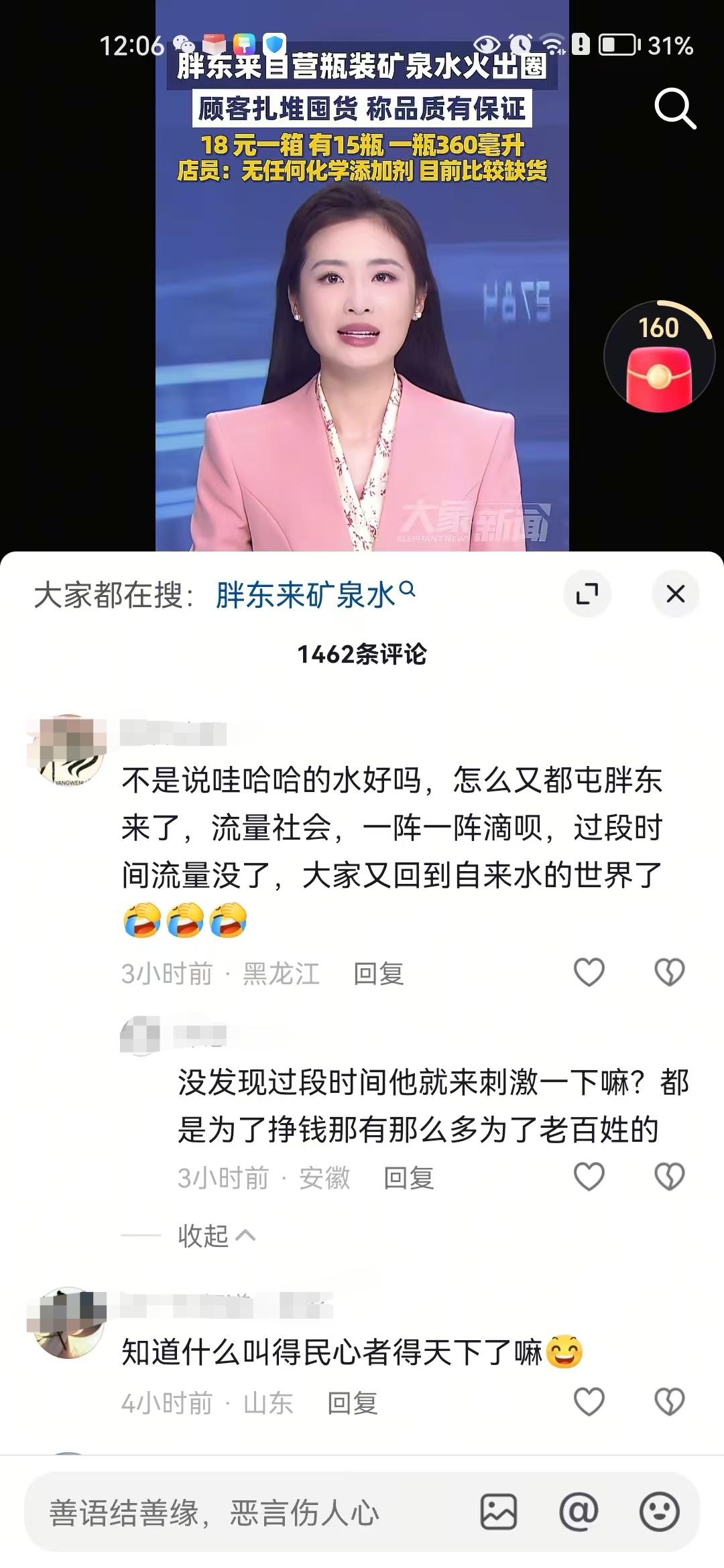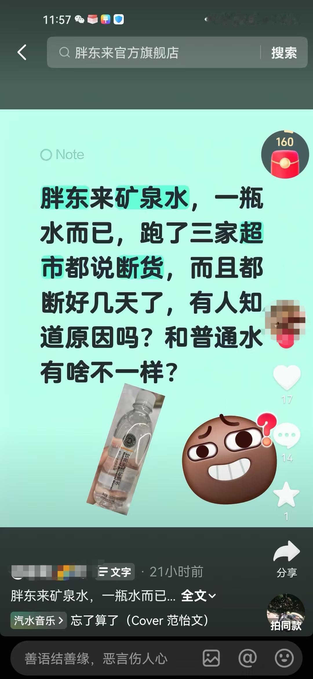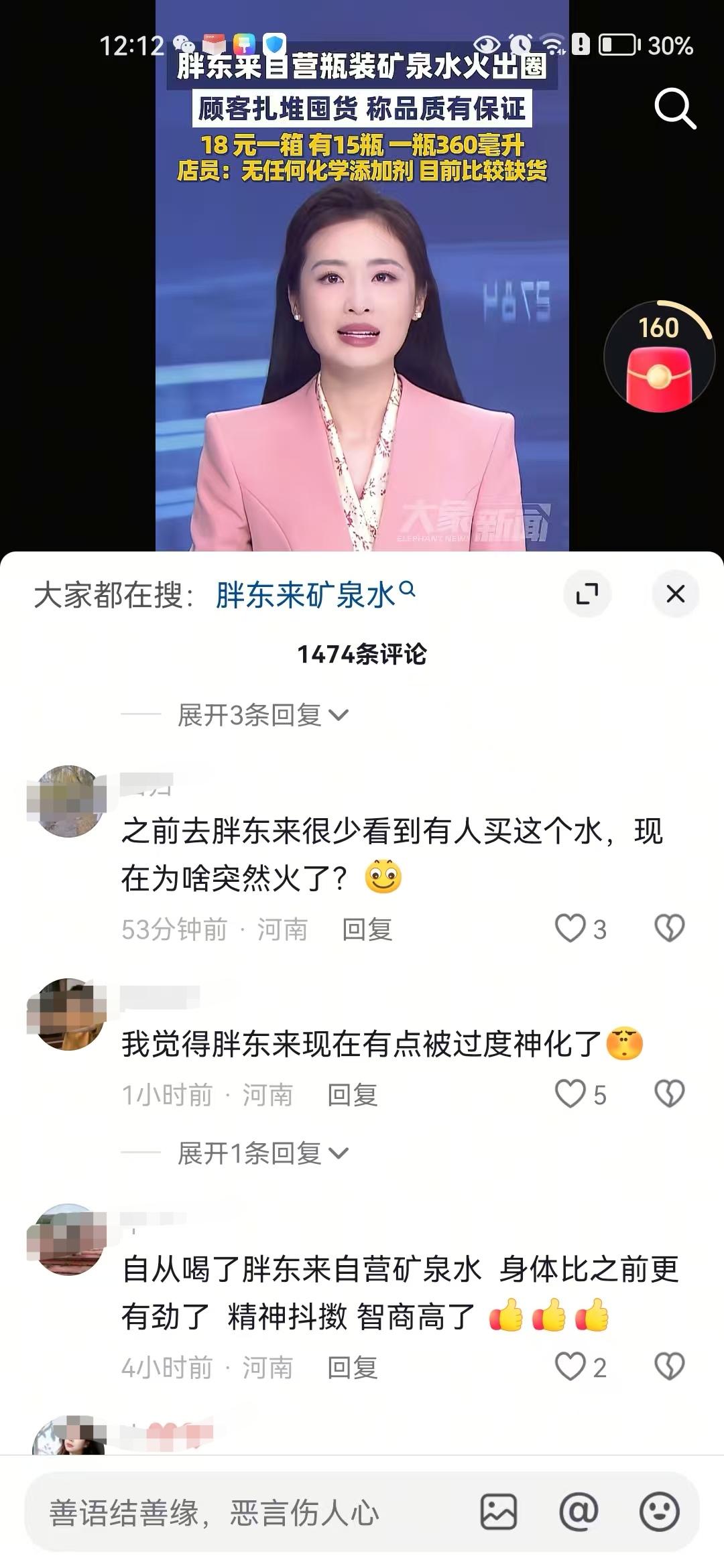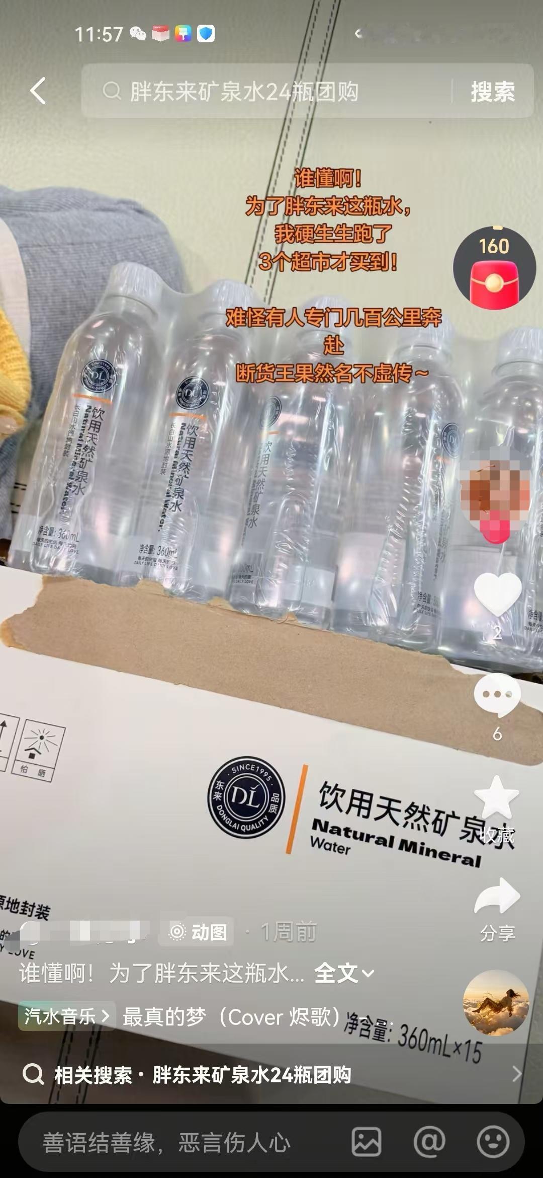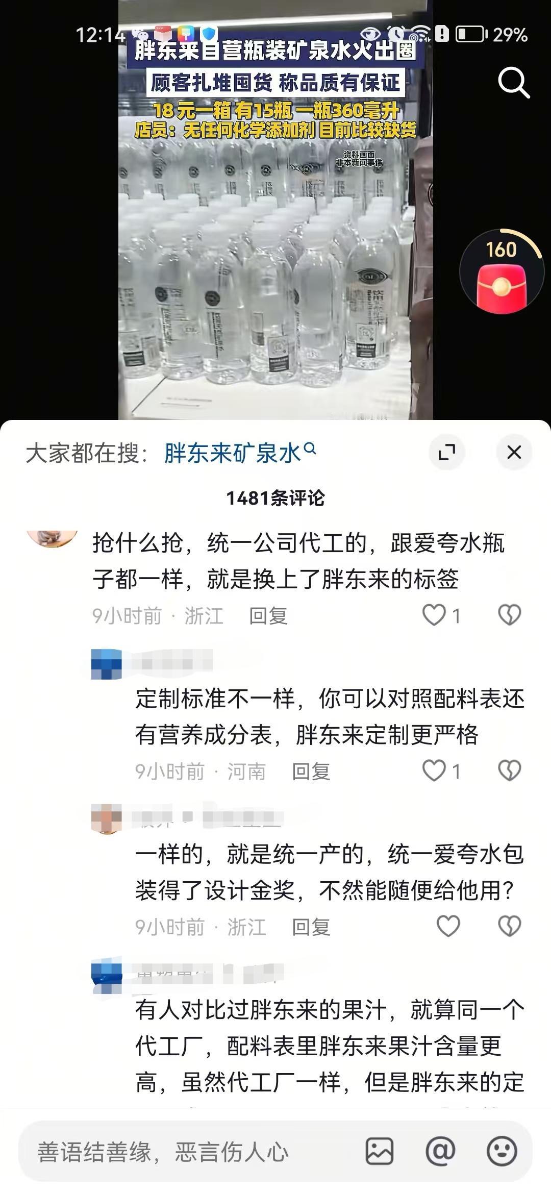 胖东来又一款自营产品火了,刷到有好几个网友说跑了3个超市都说卖断货了,有网友说,其他矿泉水可能是自来水冒充的,胖东来的必然是天然矿泉水。 胖东来真不愧是国内最火的超市,时不时的会有一款产品爆火,据我所知的有啤酒、果汁、大月饼、茶叶、牛肉干、面包、生抽、芝麻香油、花生油、菜籽油、果蔬净、洗衣液、燕麦脆、自由爱白酒、洁棉柔巾等等。 这次轮到自营矿泉水了,有网友说这款矿泉水早就开始卖了,最近是突然才火起来的,就好比前两年的娃哈哈水,在网上也是非常火爆,全网都在说支持娃哈哈。 我刷到过有七八个网友都在说,为了买这款矿泉水跑了3个超市都买不到,估计这几个网友去了3个一样的超市,要不然也不会这么统一。 为什么胖东来这款矿泉水如此受欢迎呢?有网友说胖东来这款矿泉水是统一公司代工的,跟原厂家卖的其实是一样,但是胖东来粉丝解释说,胖东来定制标准不一样,可以对照配料表,胖东来的定制绝对会更严格。