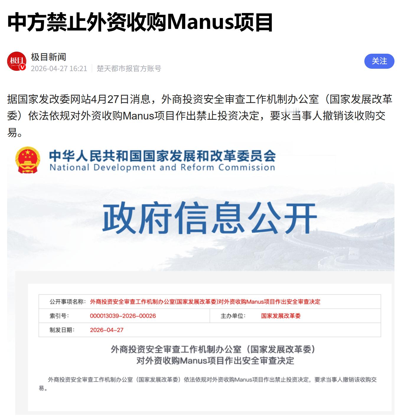 Manus收购案出结果了,依法依规,禁止收购。