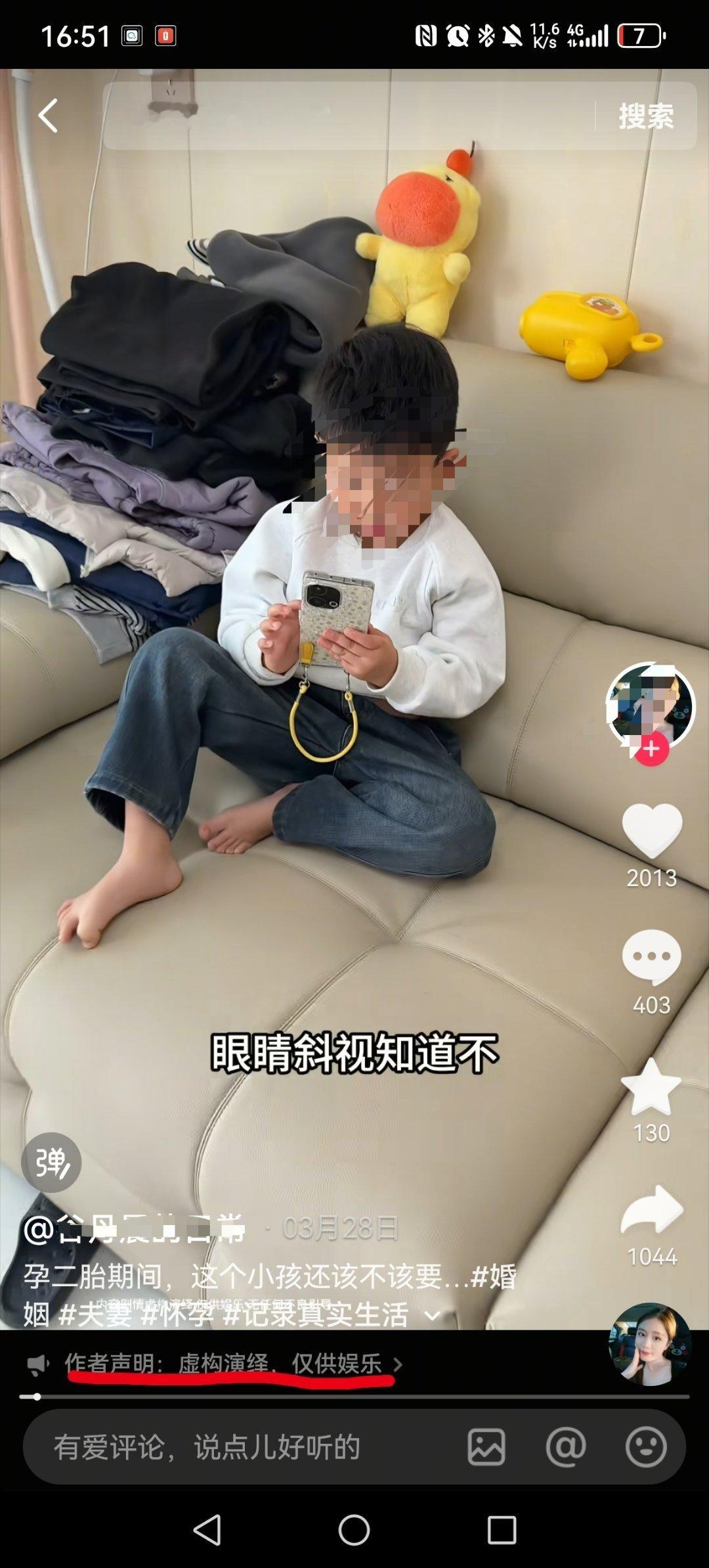 对了,看视频人家有个儿子,这次打应该是个二胎。至于真怀假怀真打假打不知道。反正我看她最新几条视频面色红润,气色不错……