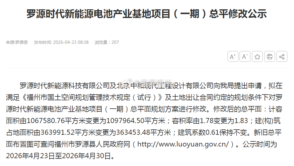 罗源时代新能源电池产业基地项目(一期)总平修改