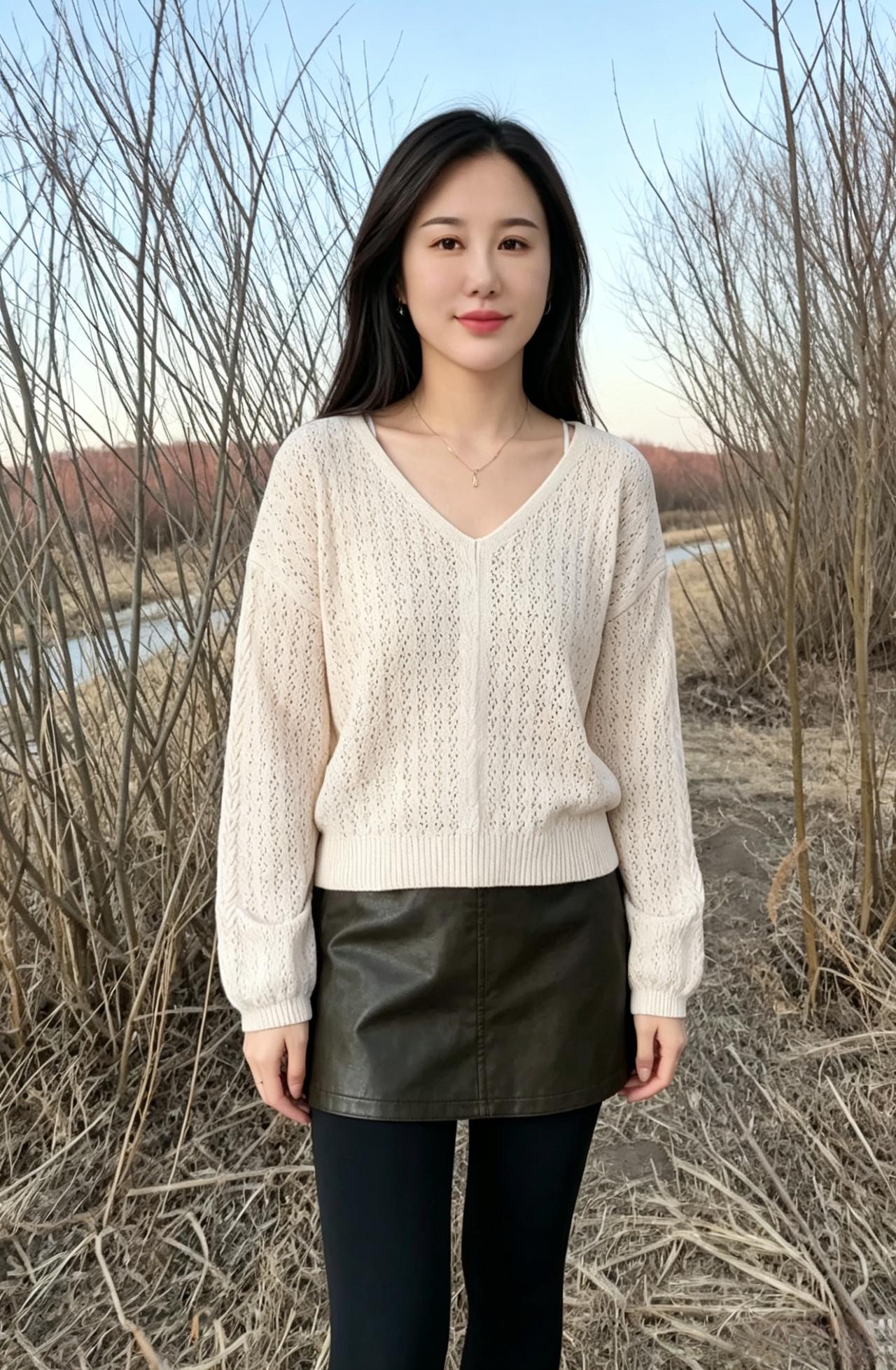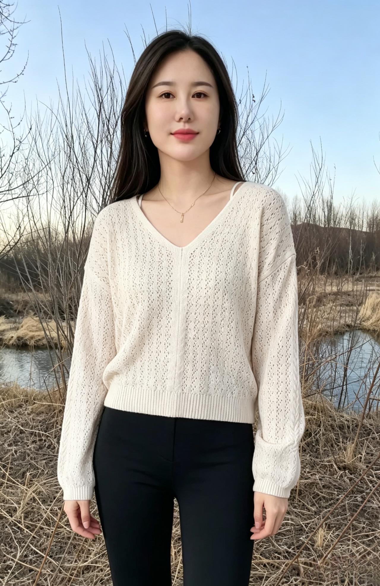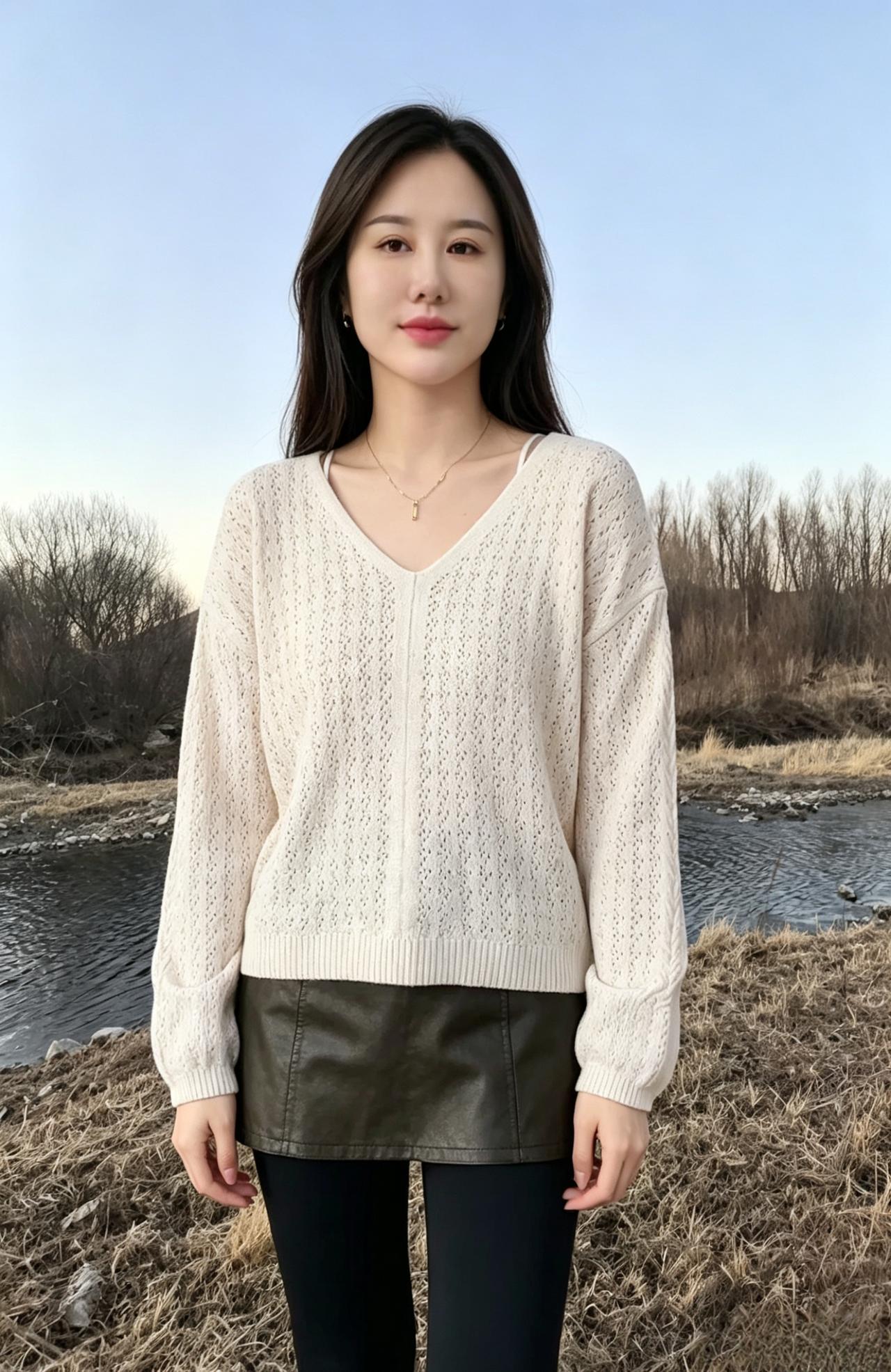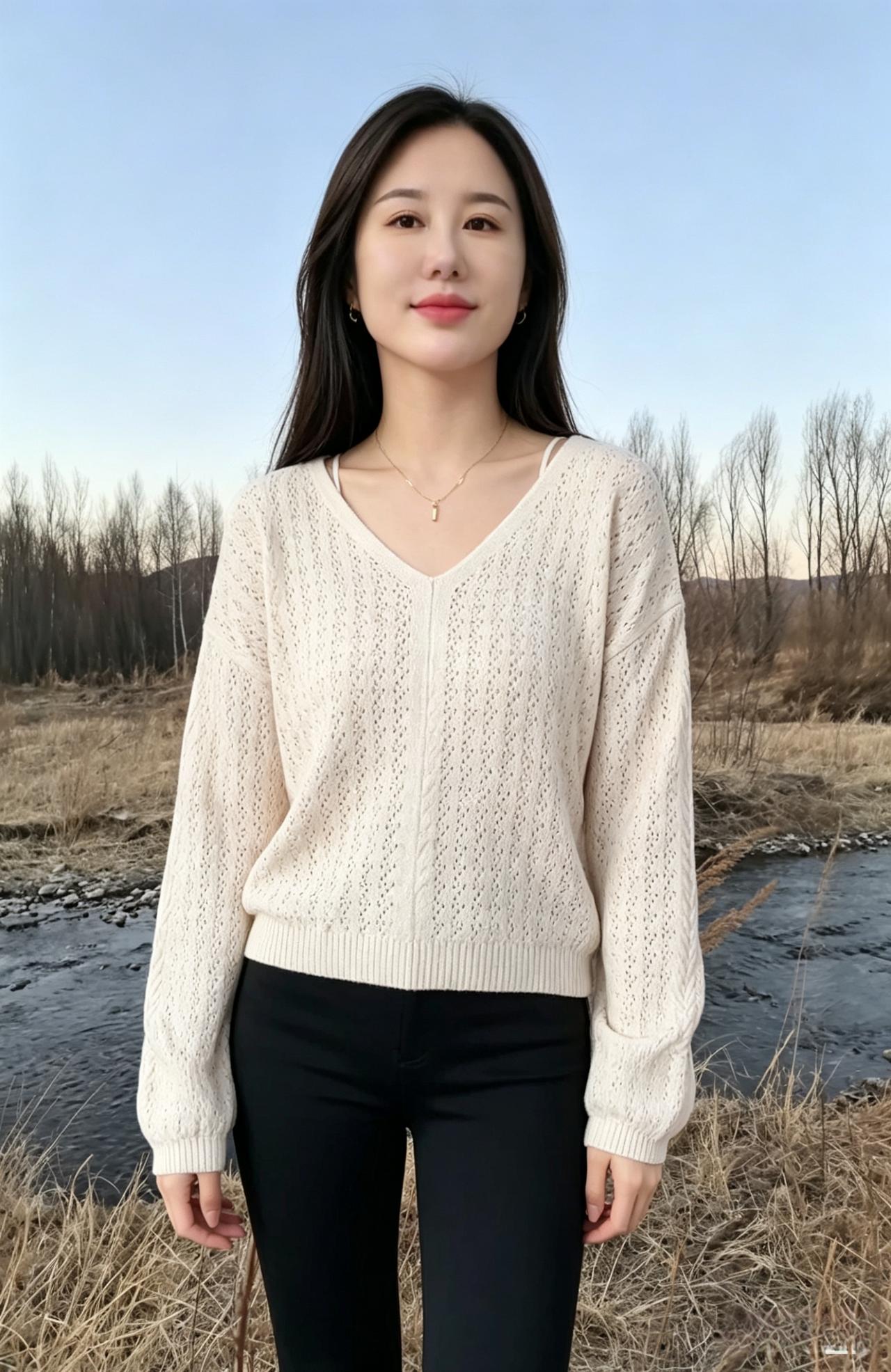 当白昼慢慢落幕,晚霞漫过天际 整片江岸都浸在温柔的暮色里 万物归于沉静,喧嚣渐渐退场 唯有你,孑然立于水边 以从容之姿,独揽一江晚景 ~ 风穿过旷野,拂过发梢与衣角 轻轻摩挲着你的眉眼 那份淡然与清冷,混合着温婉的气韵 像秋日静水,干净、纯粹、不染尘杂 眉黛浅浅,藏着淡淡的清宁 唇间含敛,藏着不言的温柔 一颦一蹙,皆是恰到好处的风雅 ~ 江水无声向前,载着落日余辉 也映着你干净温柔的模样 世间有千万种风景 晚霞、长河、晚风、秋光 可所有风景叠加起来 都不及你临水而立的半分容色 ~ 烟火在远处慢慢隐匿 天色一点点晕开浅灰与橘黄 你与山河暮色相融 温柔不张扬,清冷不疏离 在这人间黄昏,自成一方诗意天地 不必奔赴人海,不必迎合世俗 安静伫立,便是独一份的绝代风华 让晚风记住你的眉眼,让秋水珍藏你的温柔 让这漫长暮色,永久留住你的倾城模样