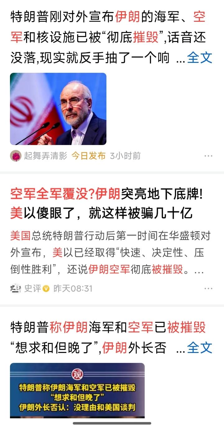 从美军四月初宣布暂时对伊朗停火算起不足半个月,其对外的官方宣传已经从“伊朗海空军已被摧毁”,变成今天早上发布的“伊朗海空军仍具备2/3的作战能力……” 不由不让人感叹,美国无论总统还是军队带队的长官,哪一个不是可以满嘴跑火车的真汉子?