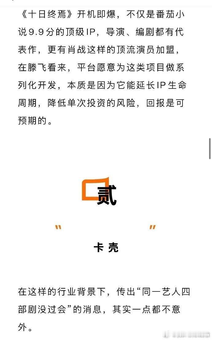 业内说十日终焉是预制爆款来看娱乐黑马剧集突围不易,十日终焉先天条件出众,静待精心