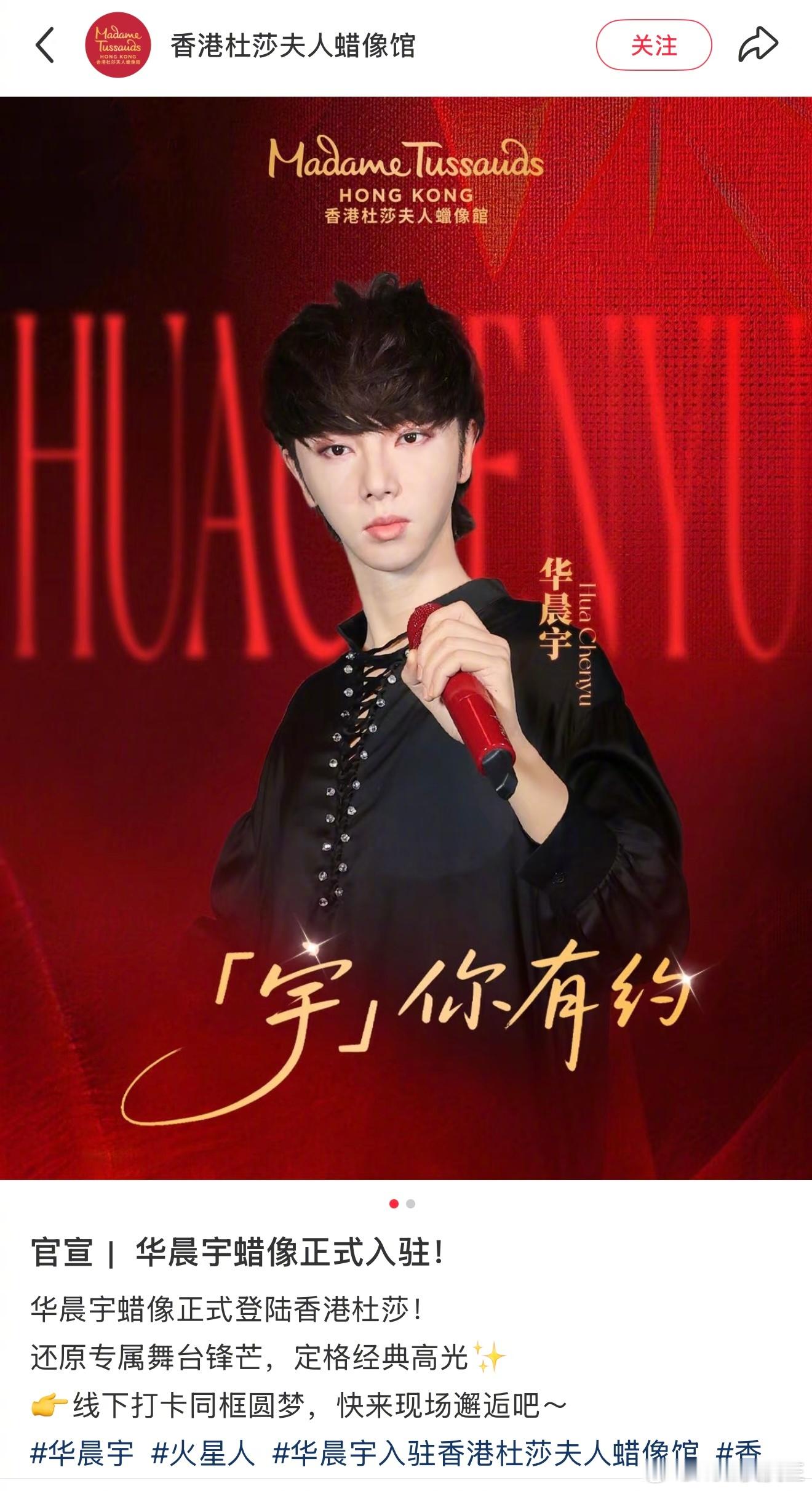 华晨宇今天正式入驻香港杜莎夫人蜡像馆了。你也来看看,与本人相似吗?还原度高吗?