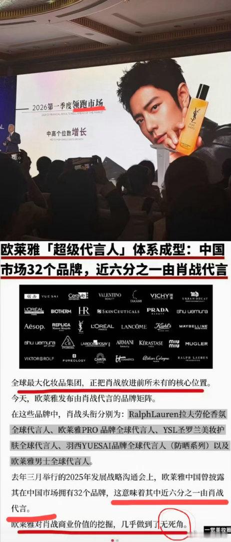 欧莱雅这个化妆品巨头现在在中国市场的势头太猛了。多个品牌由肖战代言,声量爆开之后迎来的就是销量领跑。商业体系围绕起来,起效就是非常快。