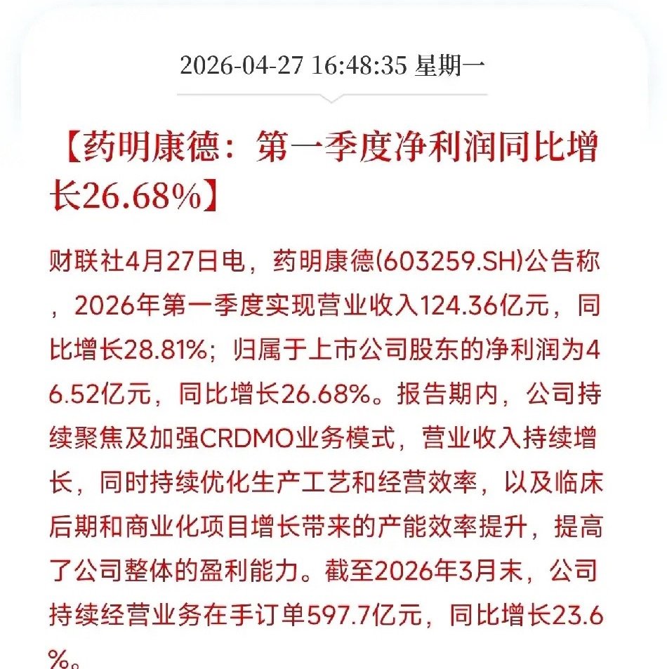 很多人把目光盯在净利润增速26%这个数字上,觉得和最近动辄翻几倍的一季报相比,不够刺激。但如果只看到这一层,你错过的可能是理解CXO这座压舱石真正含金量的机会。
