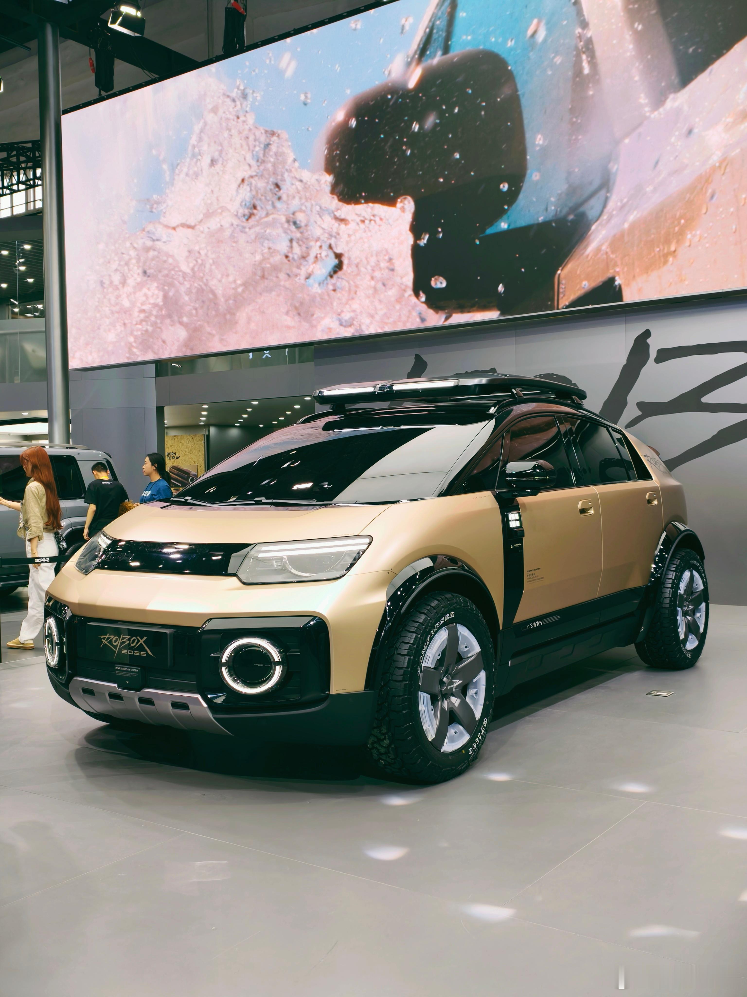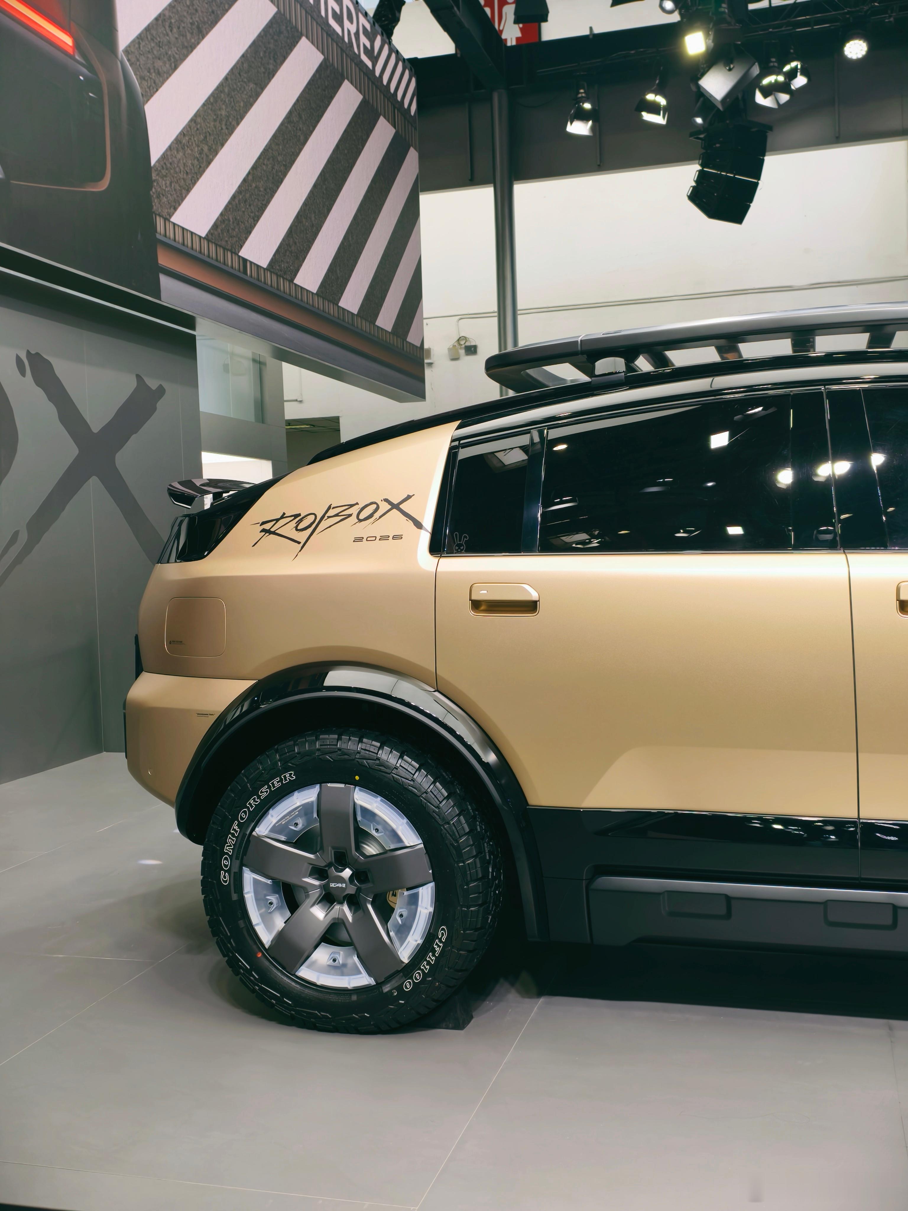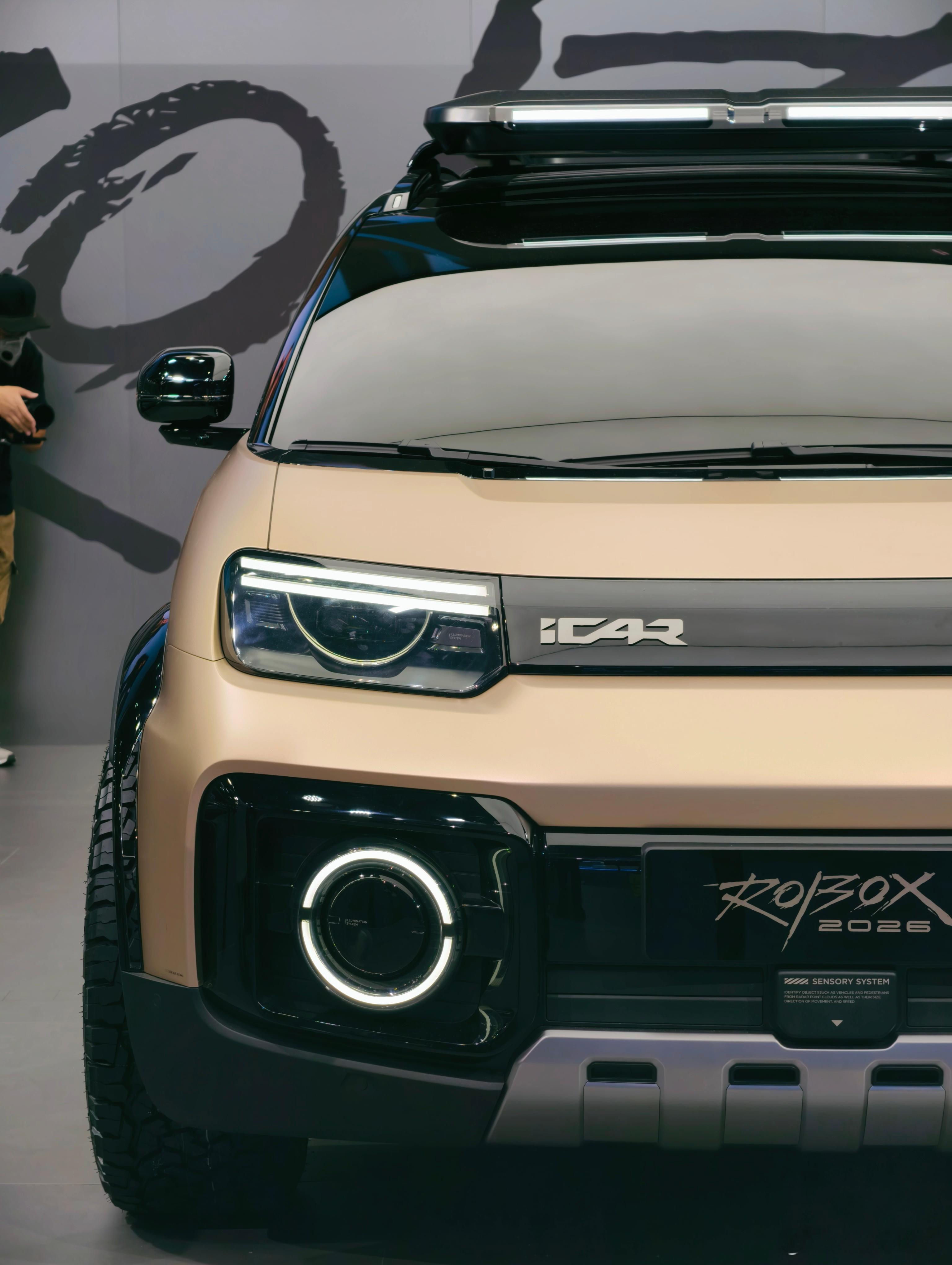 ROBOX 这个车也很有意思,以前 iCAR 的车都是方盒子,这个车上半身是一个非常低风阻的设计,下半身又非常野,放在一起看感觉又没有很违和。