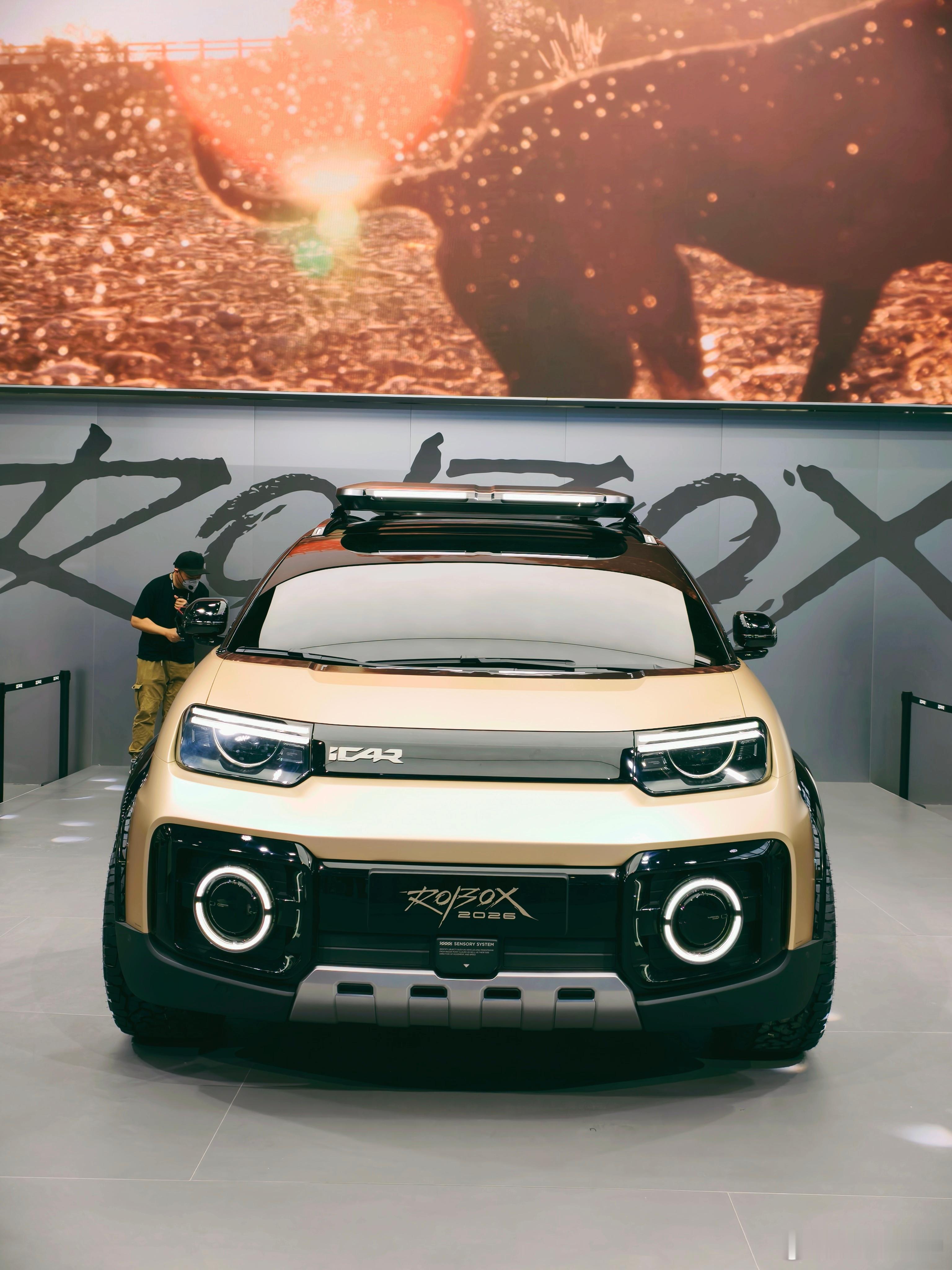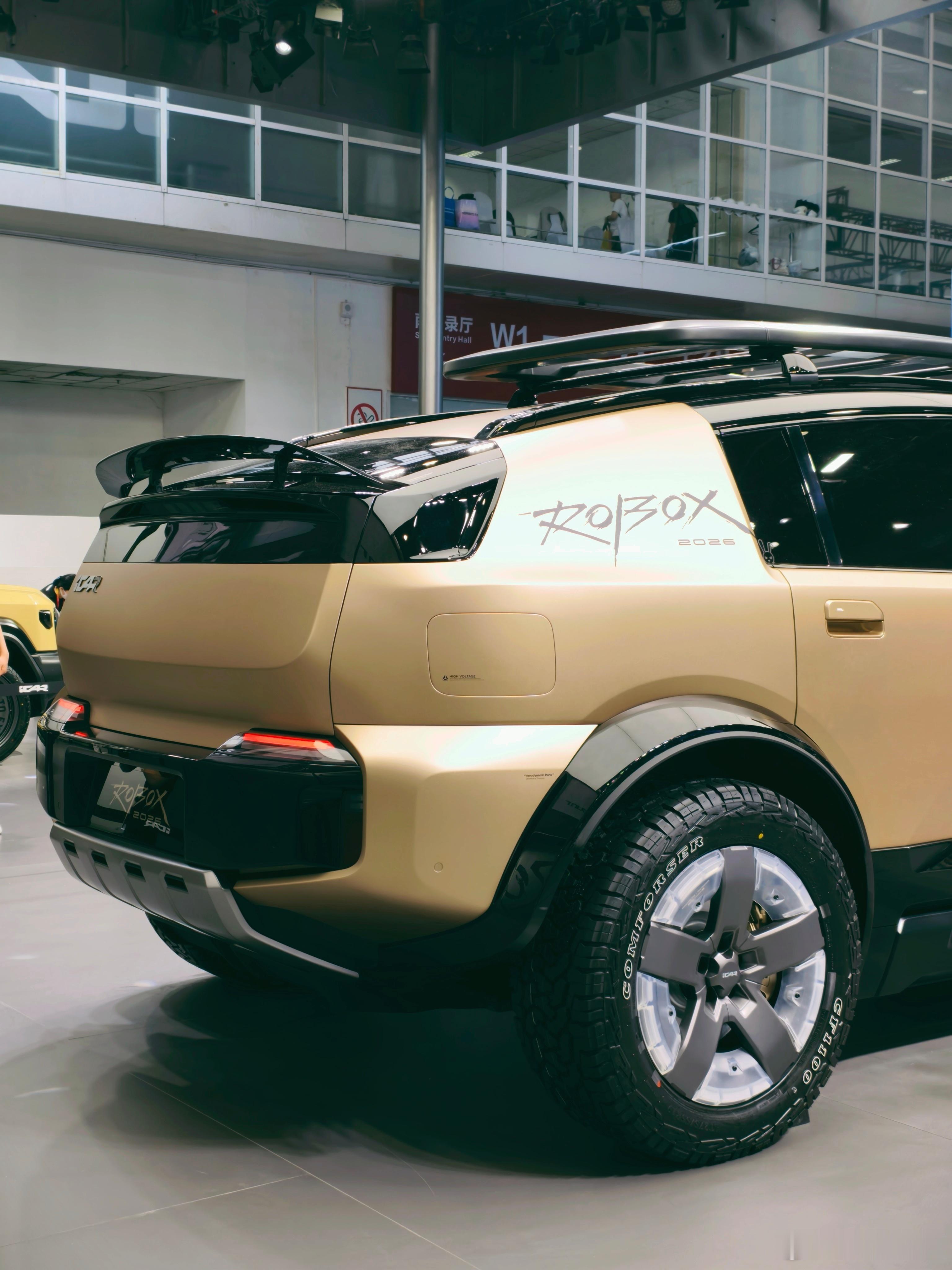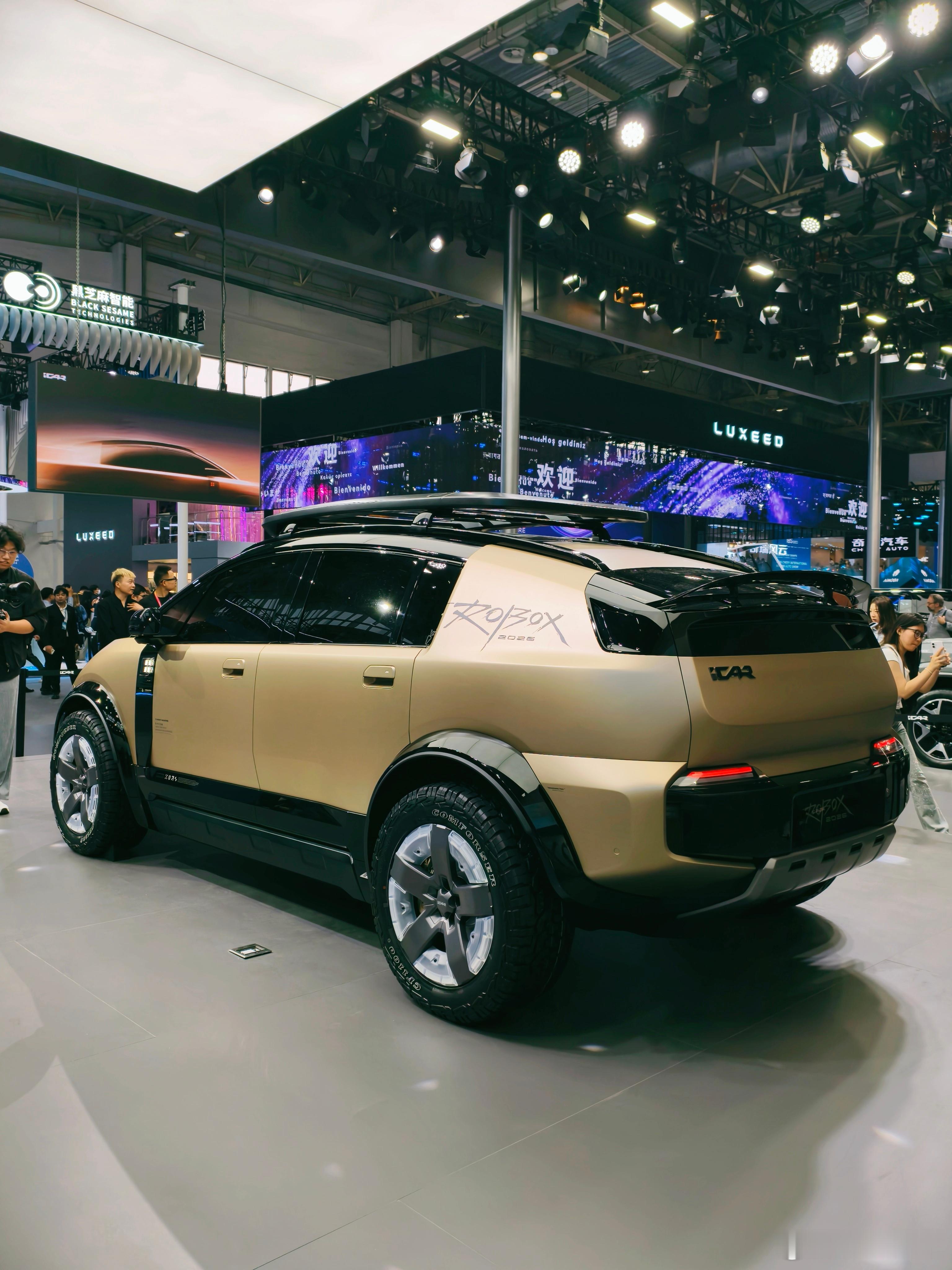 ROBOX 这个车也很有意思,以前 iCAR 的车都是方盒子,这个车上半身是一个非常低风阻的设计,下半身又非常野,放在一起看感觉又没有很违和。