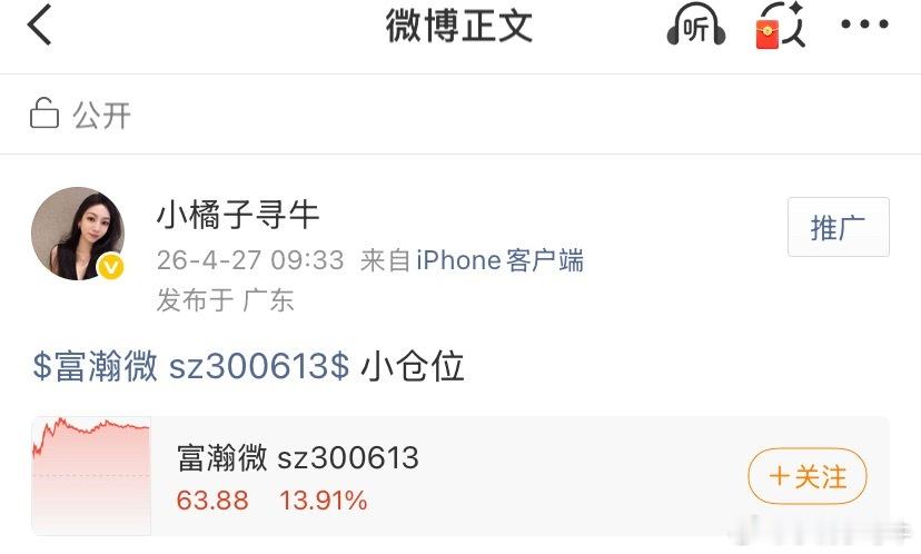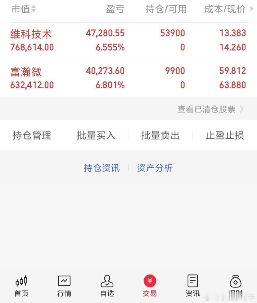 行情不是一天铸成的,投资也不是一天就能翻倍的,需要一点一点滴去成长,让我们一起成长,让 财富天下 不断升值!橘子进了的有: 周一买入: $维科技术 sh600152$ 、$富瀚微 sz300613$ 努力加油干吧!注意注意这是我个人操作仅供参考,不建议大家盲目私自操作!