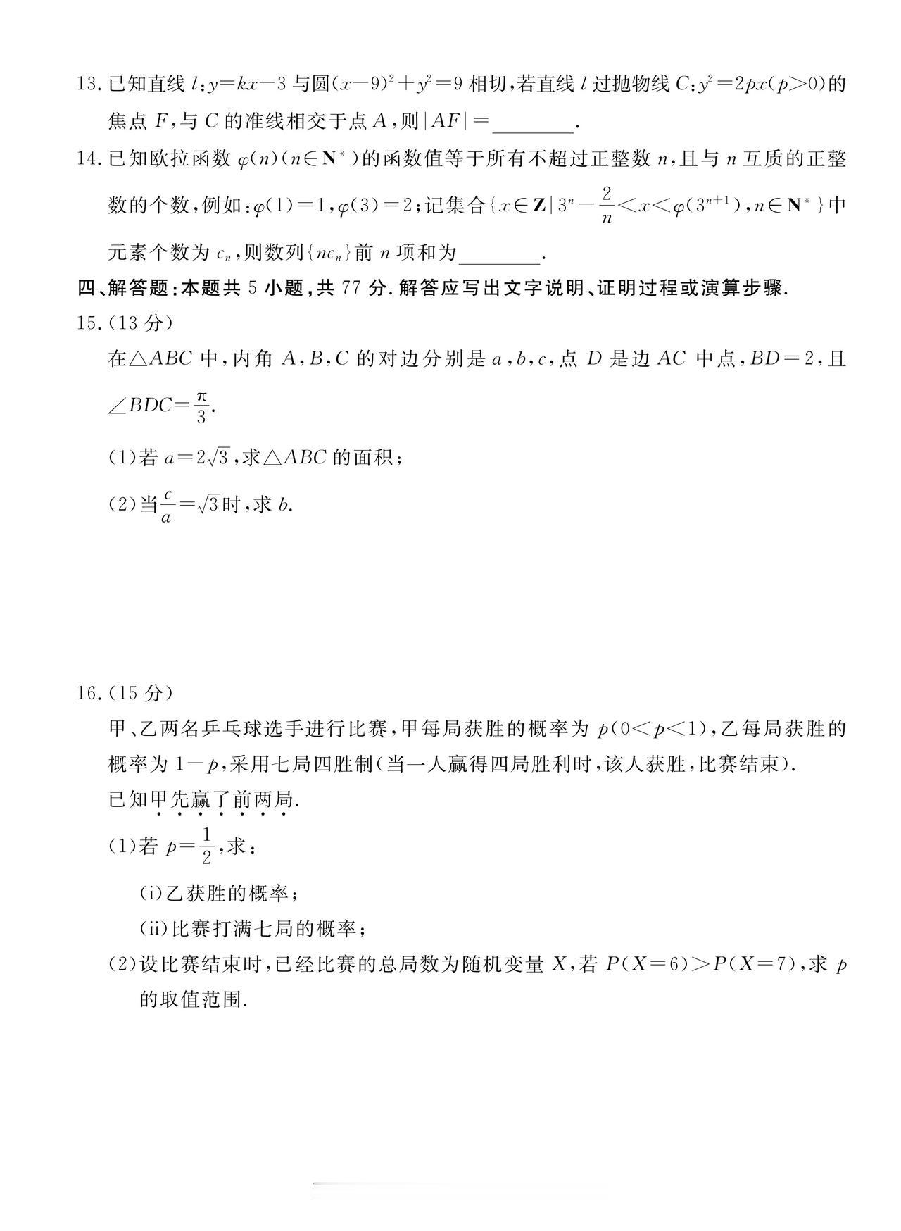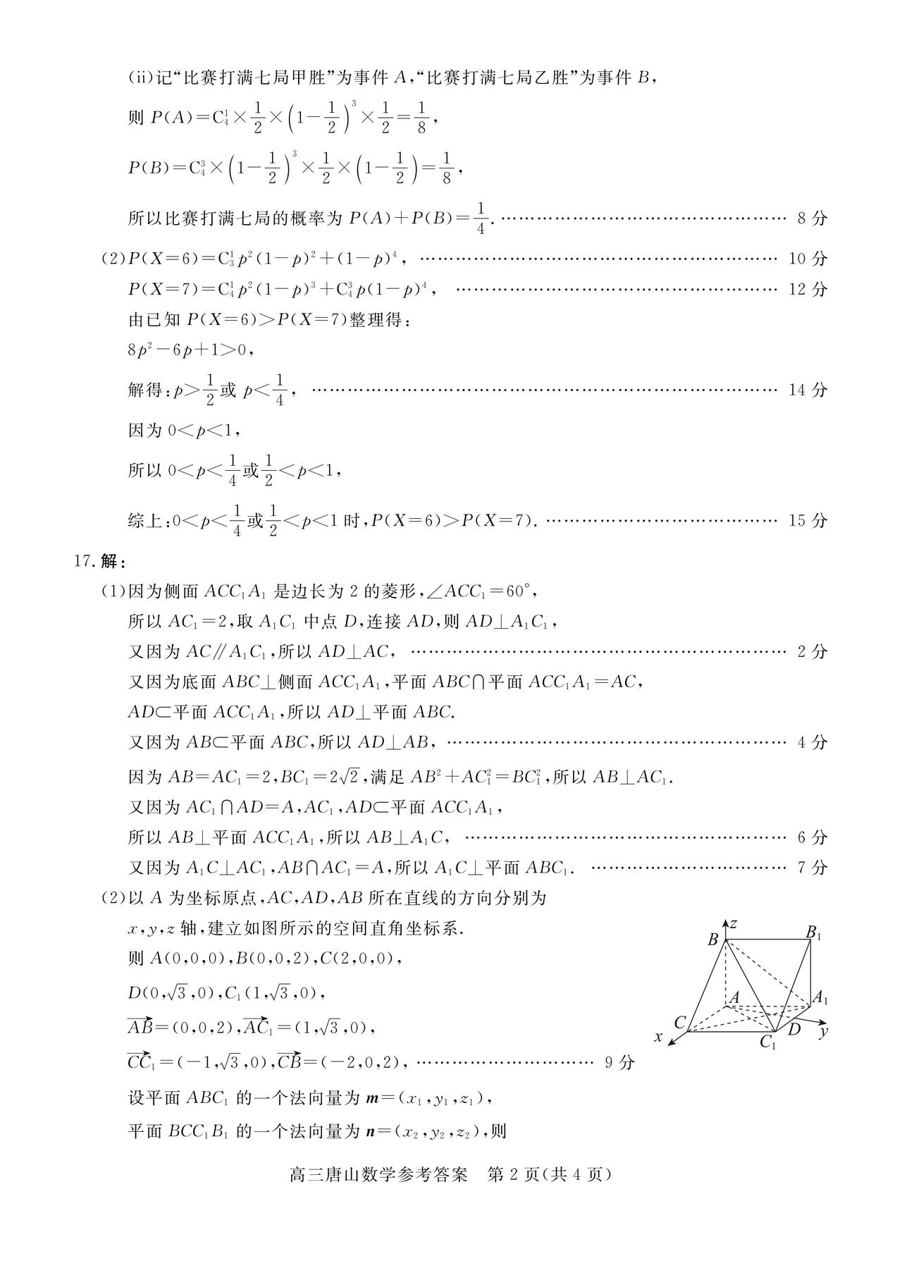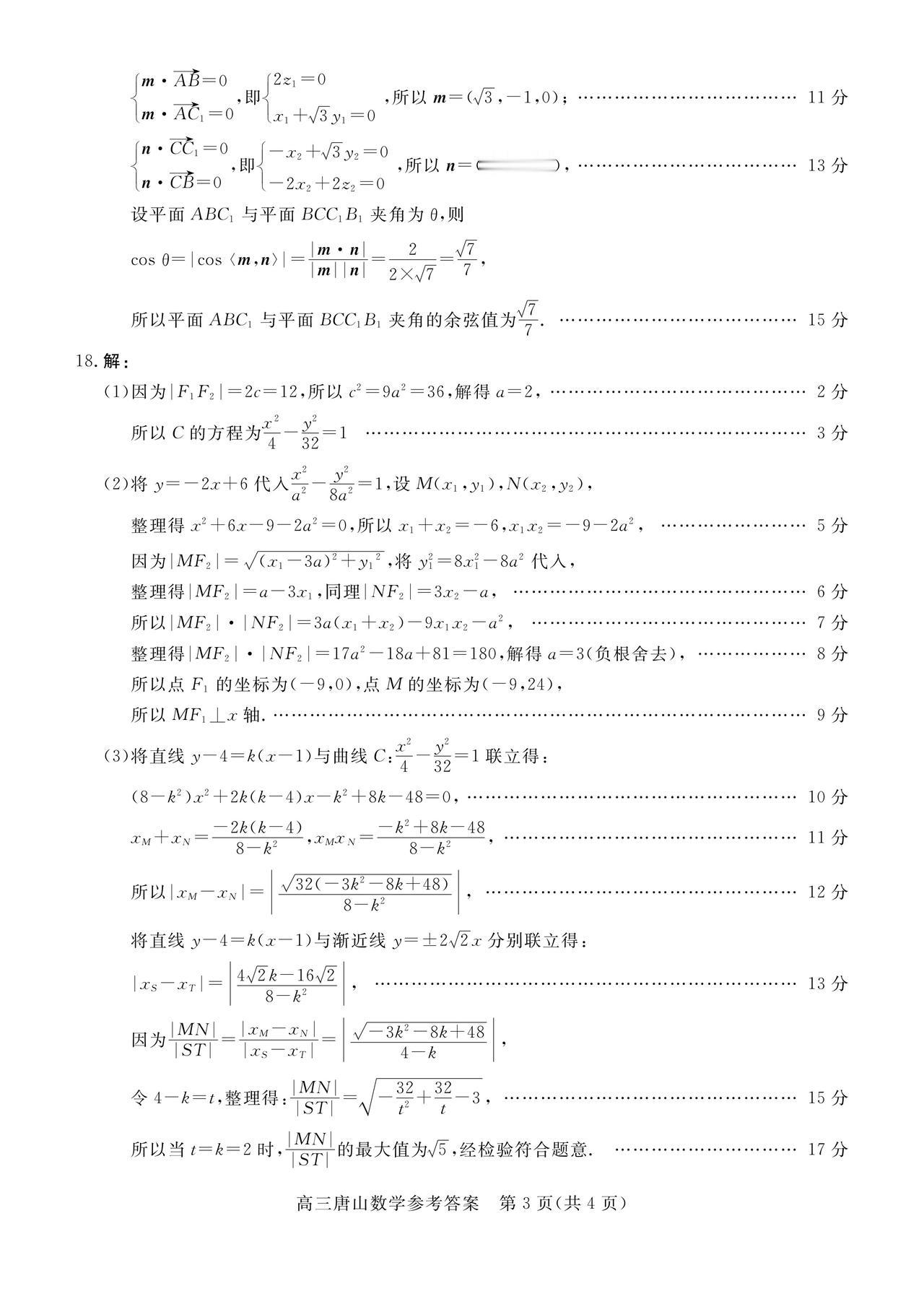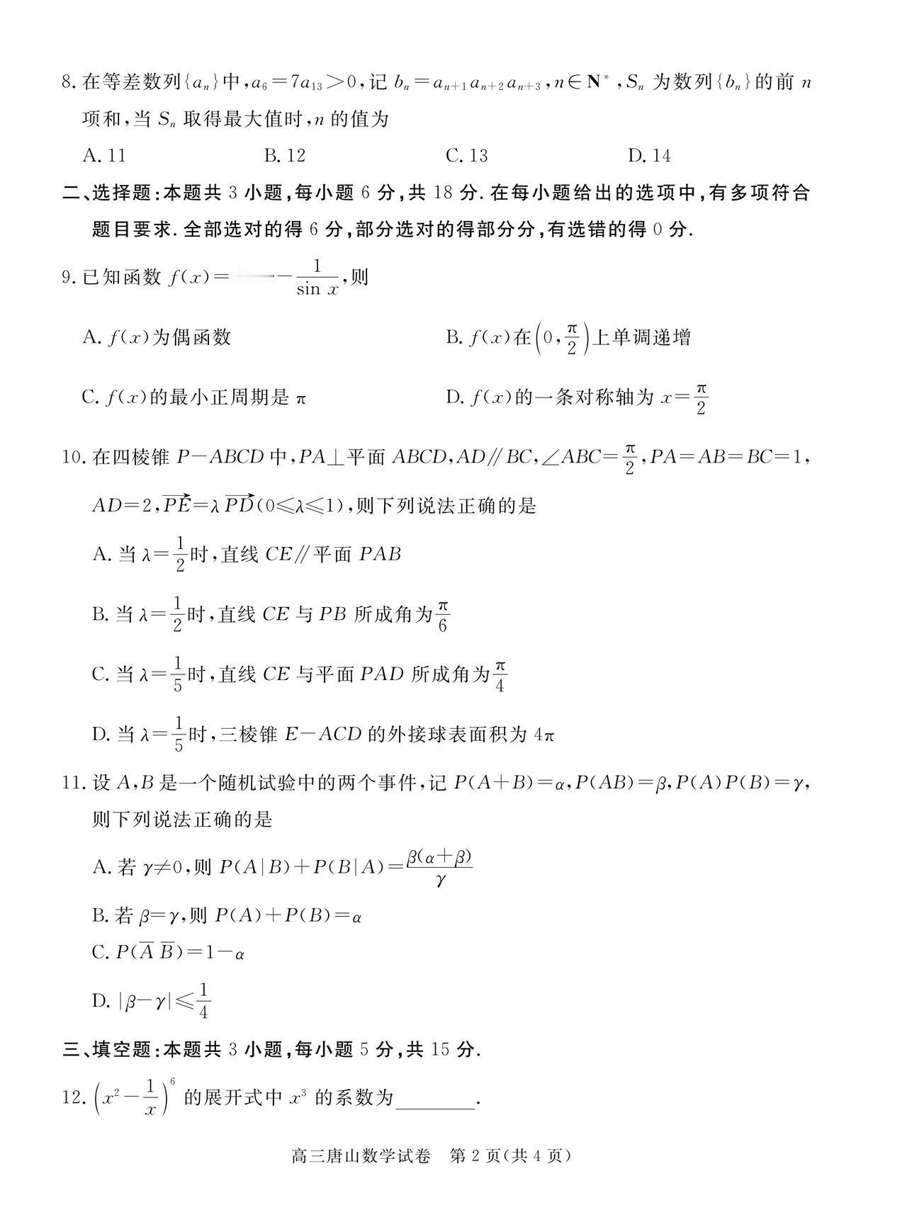 河北省唐山市2026届高三4月二模考试数学试题及答案