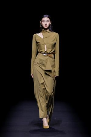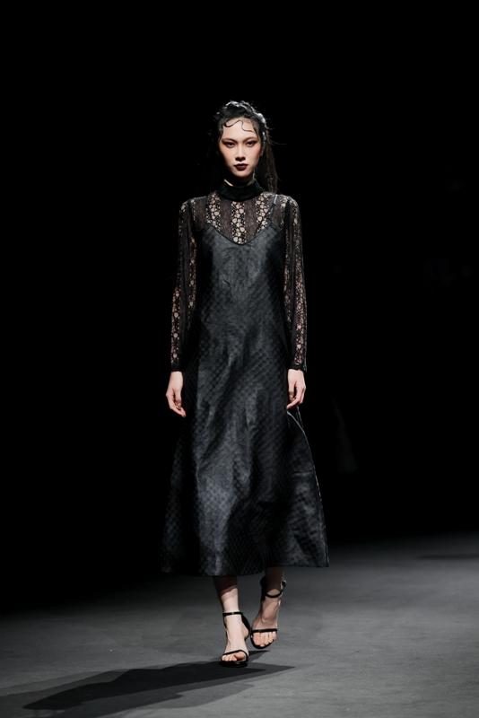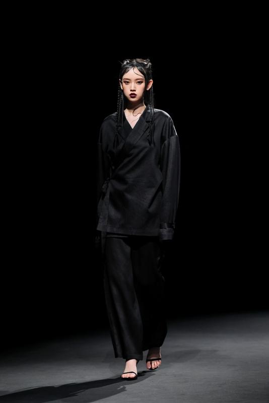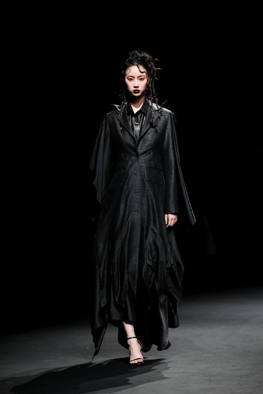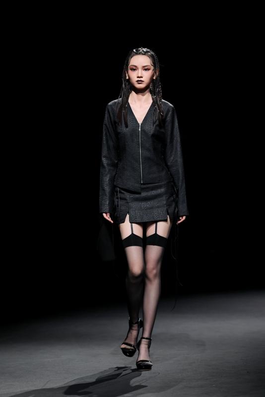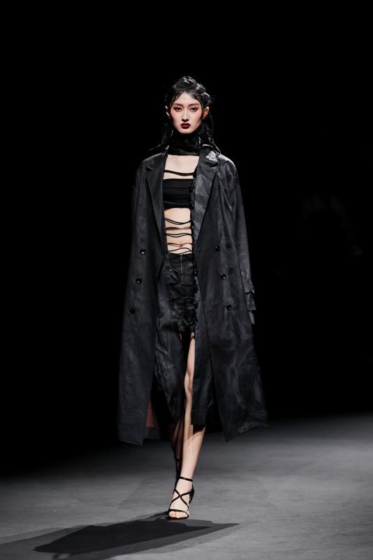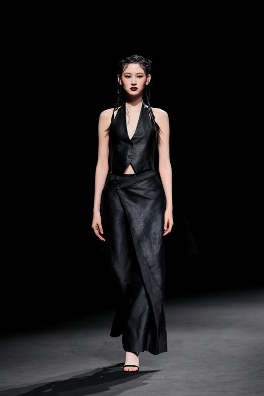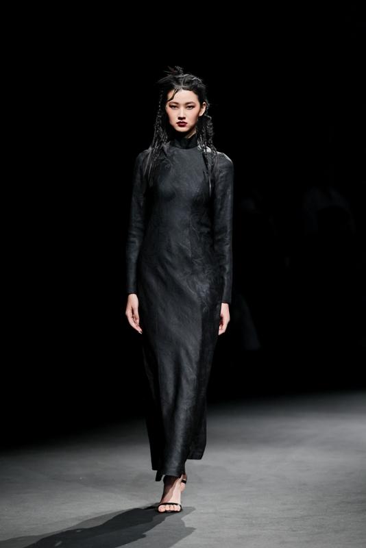 XU'S 欧阳煦2026春季中国国际时装周,以"Realms Beyond彼界"为主题的暗黑美学盛宴惊艳落幕! 本季穿搭以标志性的全黑基调贯穿全场,将非遗香云纱的厚重质感与欧根纱的轻盈通透完美碰撞。无袖方领上衣搭配拖地长裙,利落剪裁勾勒出优雅线条;不对称吊带裙采用不规则裙摆设计,行走间自带神秘气场;蕾丝拼接透视罩衫搭配高开叉半裙,在禁欲与性感之间找到绝妙平衡 。 铠甲结构元素的融入让柔美裙装多了几分力量感,每一套造型都像是从神秘彼界走来的使者,将"黑色生命力"诠释得淋漓尽致。
