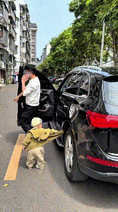 我的妈呀!这当爹的心也太大了!抱着个电话聊得热火朝天,下车就走,压根儿没顾上娃!小宝贝的外套被车门缝死死夹住,怎么拽都拽不动! 这娃也是机灵,一看扯不出来,干脆直接把衣服脱了,光着个小身子就屁颠屁颠追爸爸去了!从头到尾他爹愣是没回头看一眼!这要是车没锁、或者衣服没夹住出啥意外,可咋整?带娃还敢这么分心,真是叫人捏一把汗!搞笑